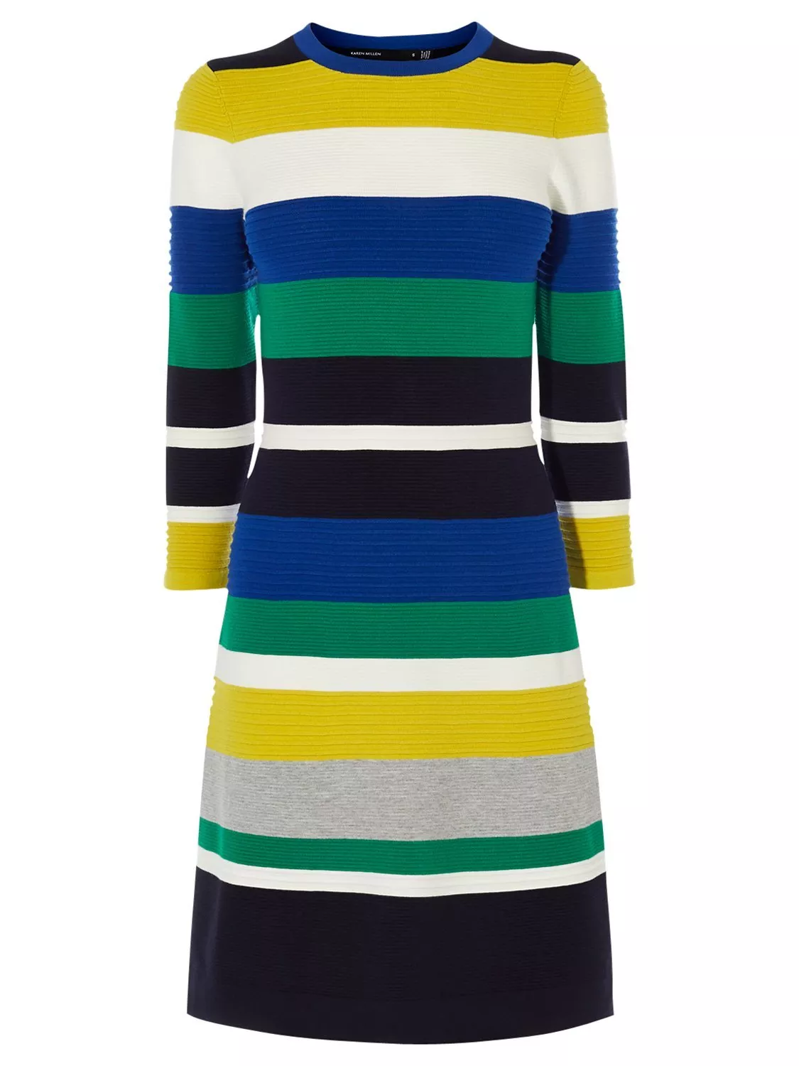 Add bold stripe pattern to your daytime looks in this versatile stripe jumper dress from Karen Millen.
