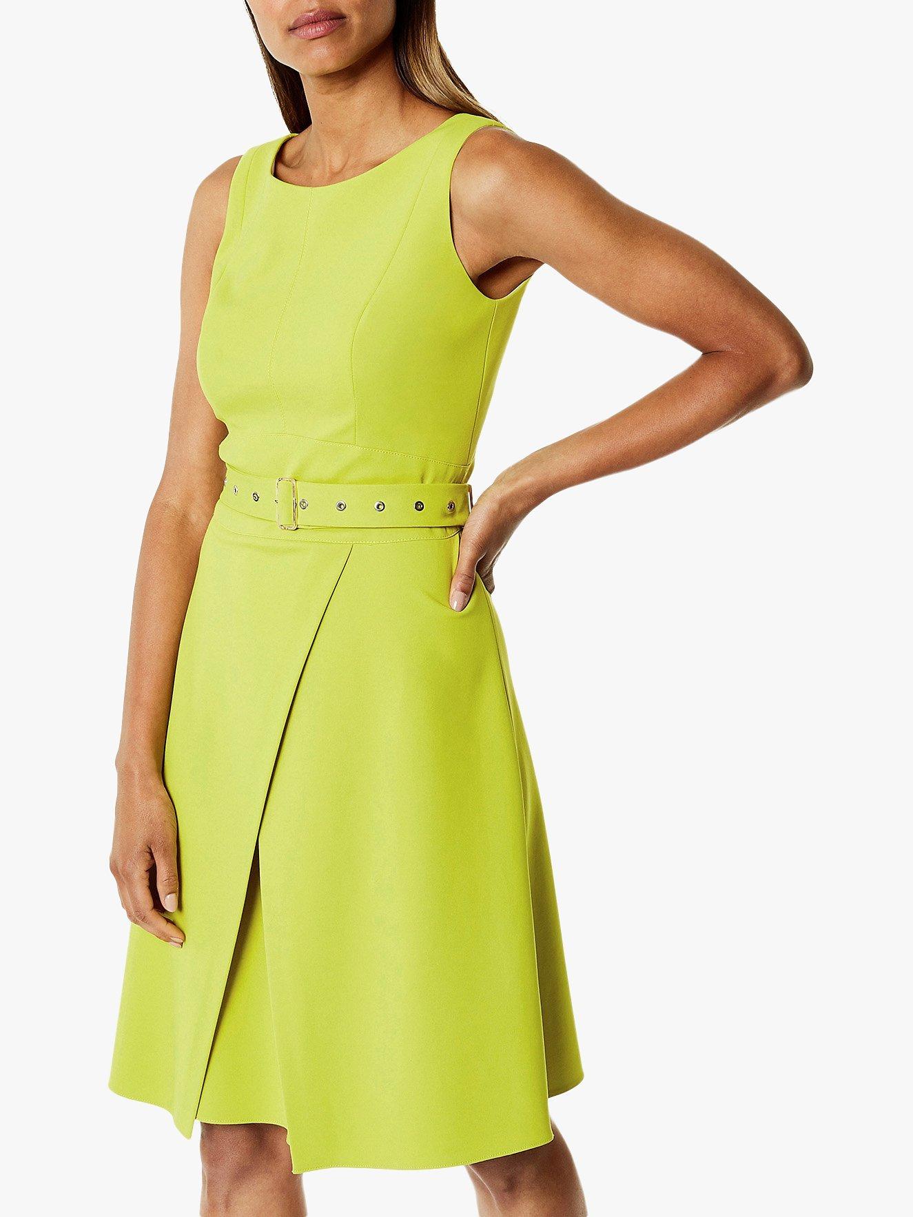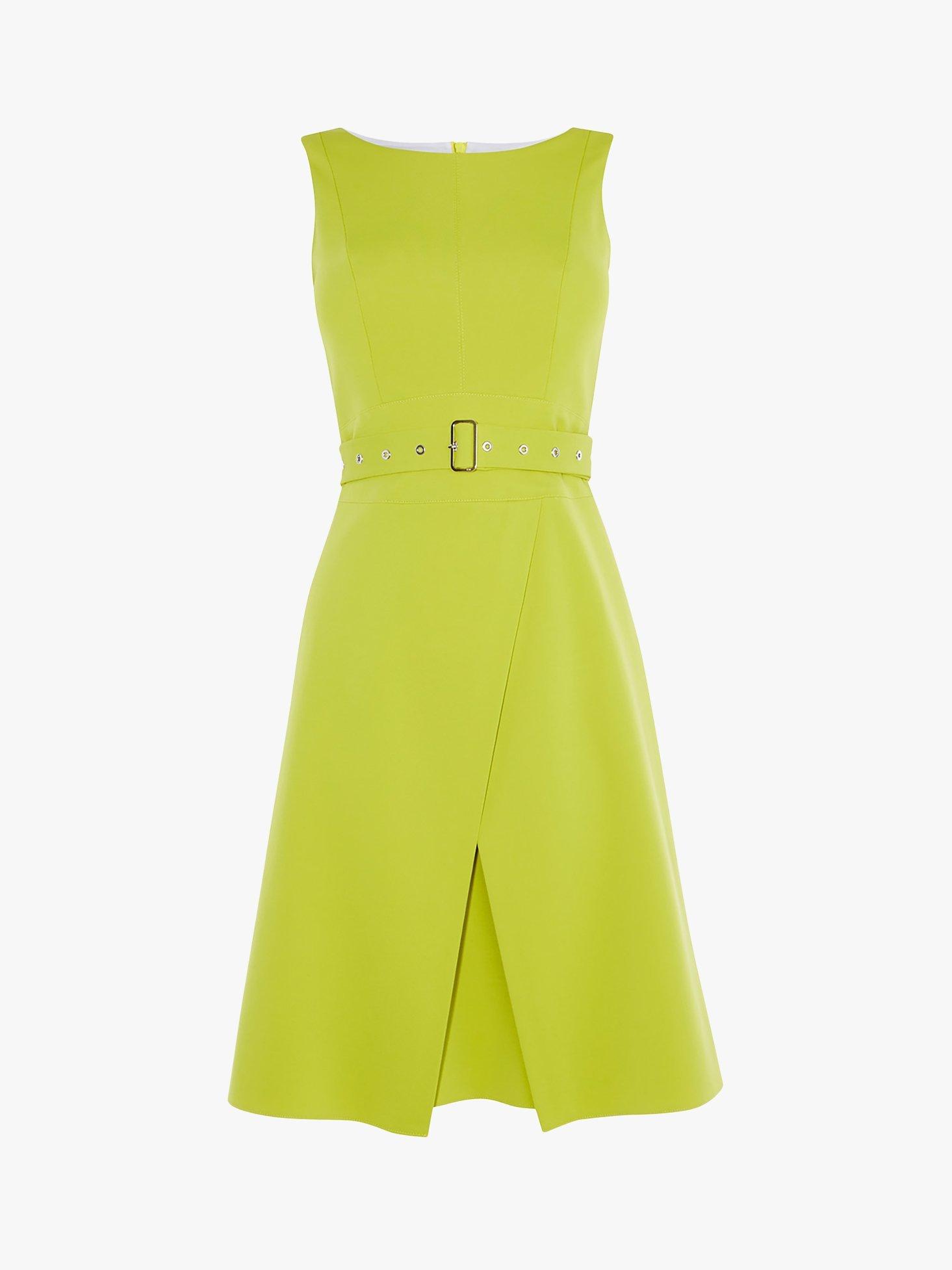 Softly structured and made with stretch for comfort, this sleeveless style flatters the figure with its fitted bodice, cinched waist and front split hem. It comes with a belt to define the silhouette and fastens with a concealed centre-back zip.