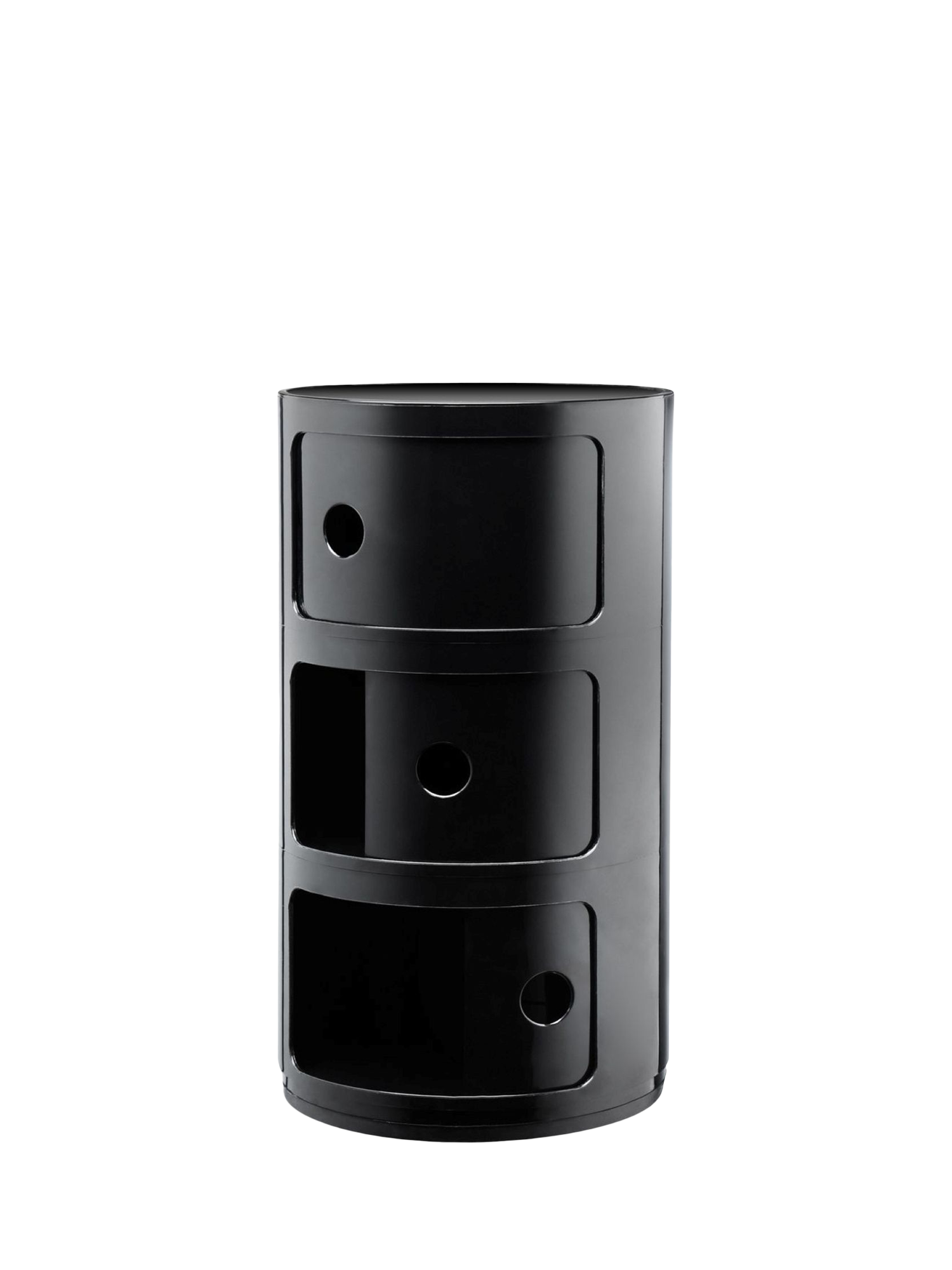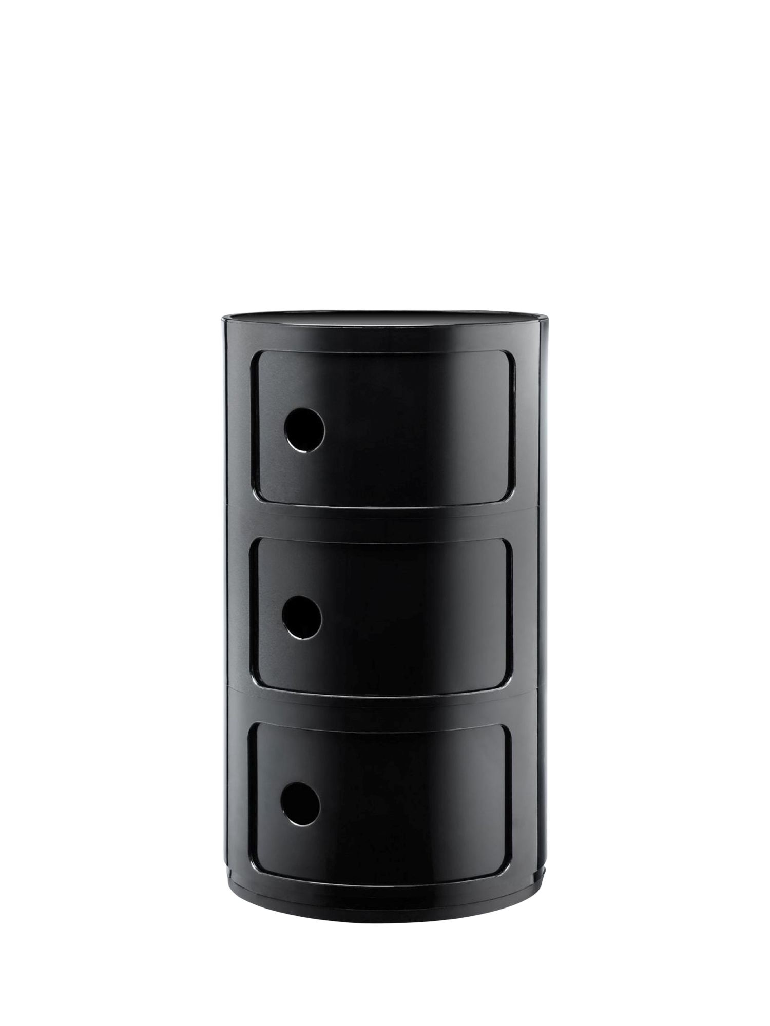 Componibili's circular form and modular elements are designed to meet different needs and to fit perfectly into every room in the home. The slide-open doors with finger hole handles reveal spacious compartments ideal for storage.