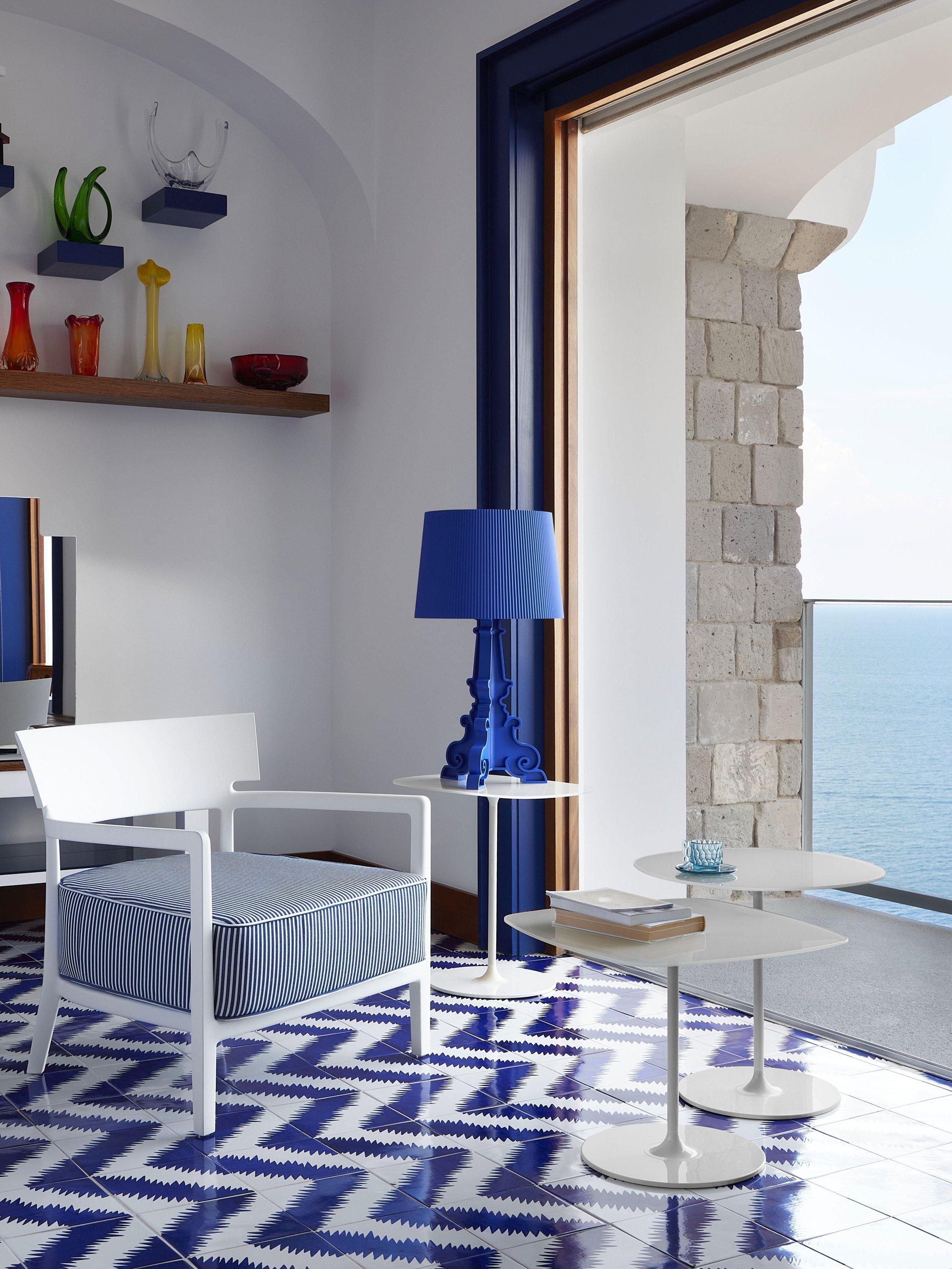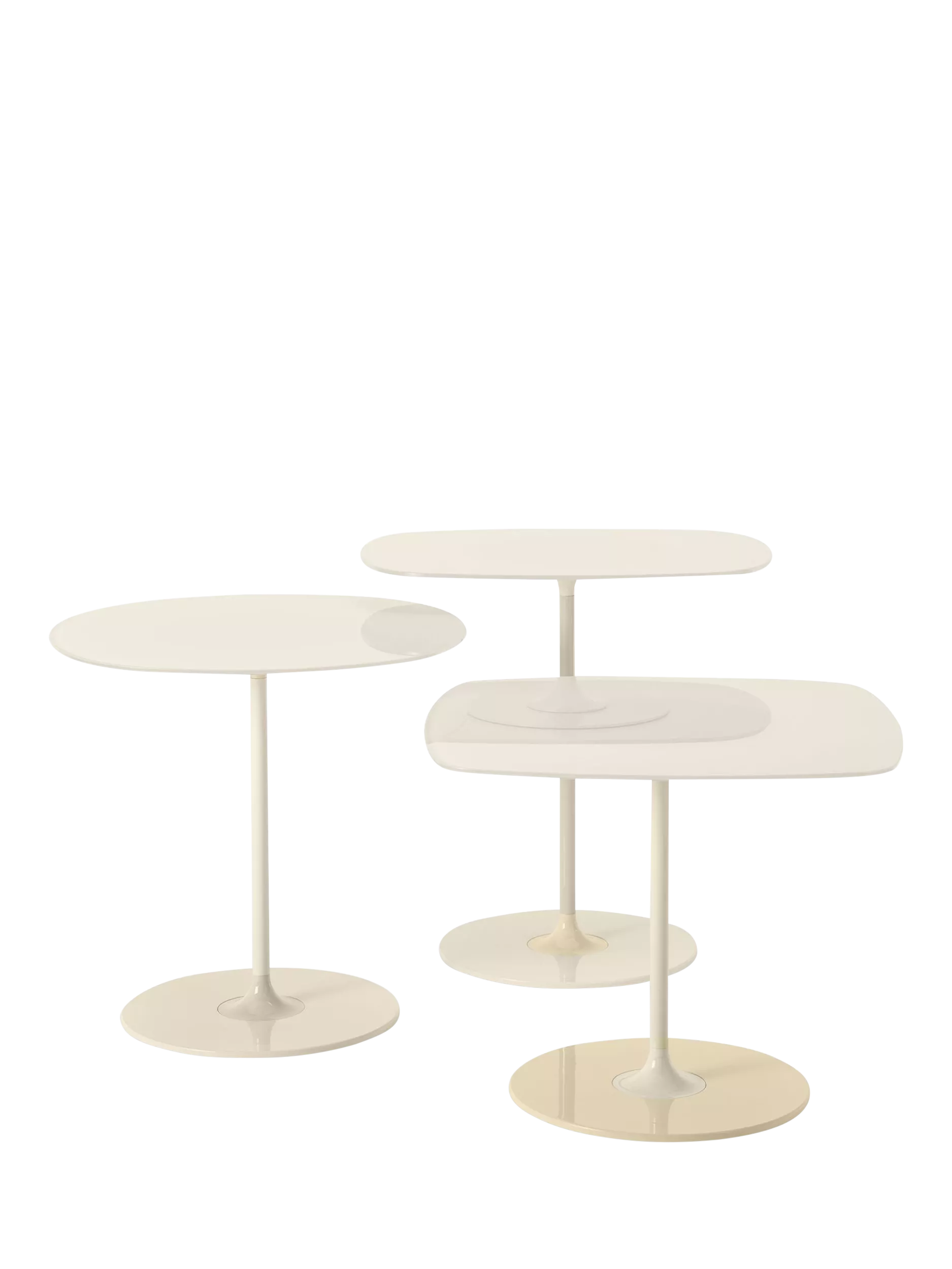 Designed by Piero Lissoni, and brought to life by Kartell, Thierry is a family of highly characteristic occasional tables that can be assembled in various ways. The beauty of these little tables lies in their jewel-like design, with sleek pedestal bases that take up minimal space and back-painted glass tops.
