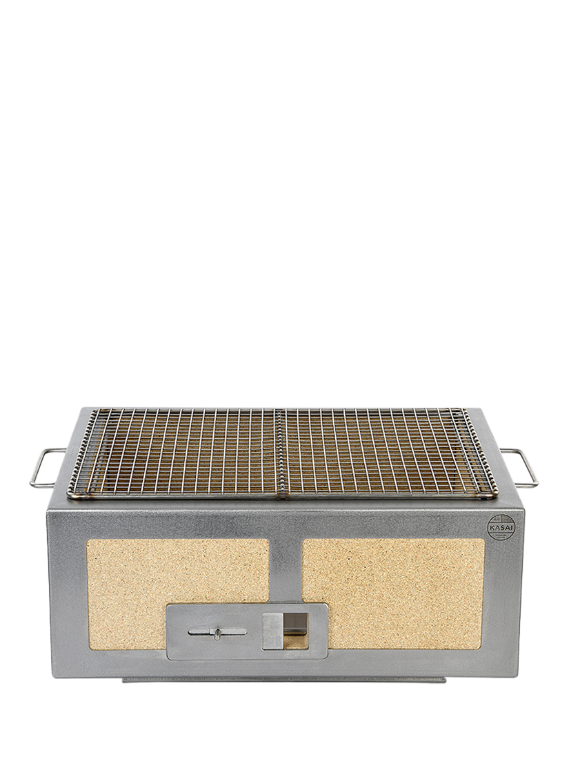 The Kasai Konro Grill, designed and manufactured in the UK with precision and care, is inspired by the world-famous Japanese design, the Kasai Konro style grills. Whether you're grilling meats, fish, vegetables or adding the perfect finish to a sous vide dish, the Kasai Konro Grill is your ultimate cooking companion outdoors. Made with a brushed stainless steel finish, floating feet and convenient handles.