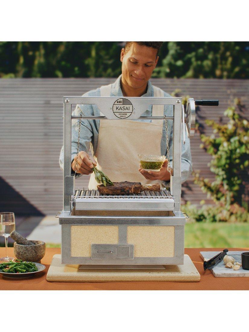 The Kasai Konro Grill, designed and manufactured in the UK with precision and care, is inspired by the world-famous Japanese design, the Kasai Konro style grills. Whether you're grilling meats, fish, vegetables or adding the perfect finish to a sous vide dish, the Kasai Konro Grill is your ultimate cooking companion outdoors. Made with a brushed stainless steel finish, floating feet and convenient handles.