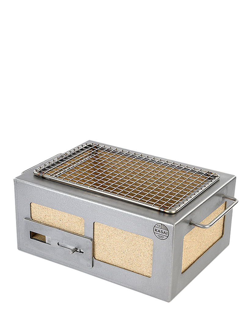 The Kasai Konro Grill, designed and manufactured in the UK with precision and care, is inspired by the world-famous Japanese design, the Kasai Konro style grills. Whether you're grilling meats, fish, vegetables or adding the perfect finish to a sous vide dish, the Kasai Konro Grill is your ultimate cooking companion outdoors. Made with a brushed stainless steel finish, floating feet and convenient handles.