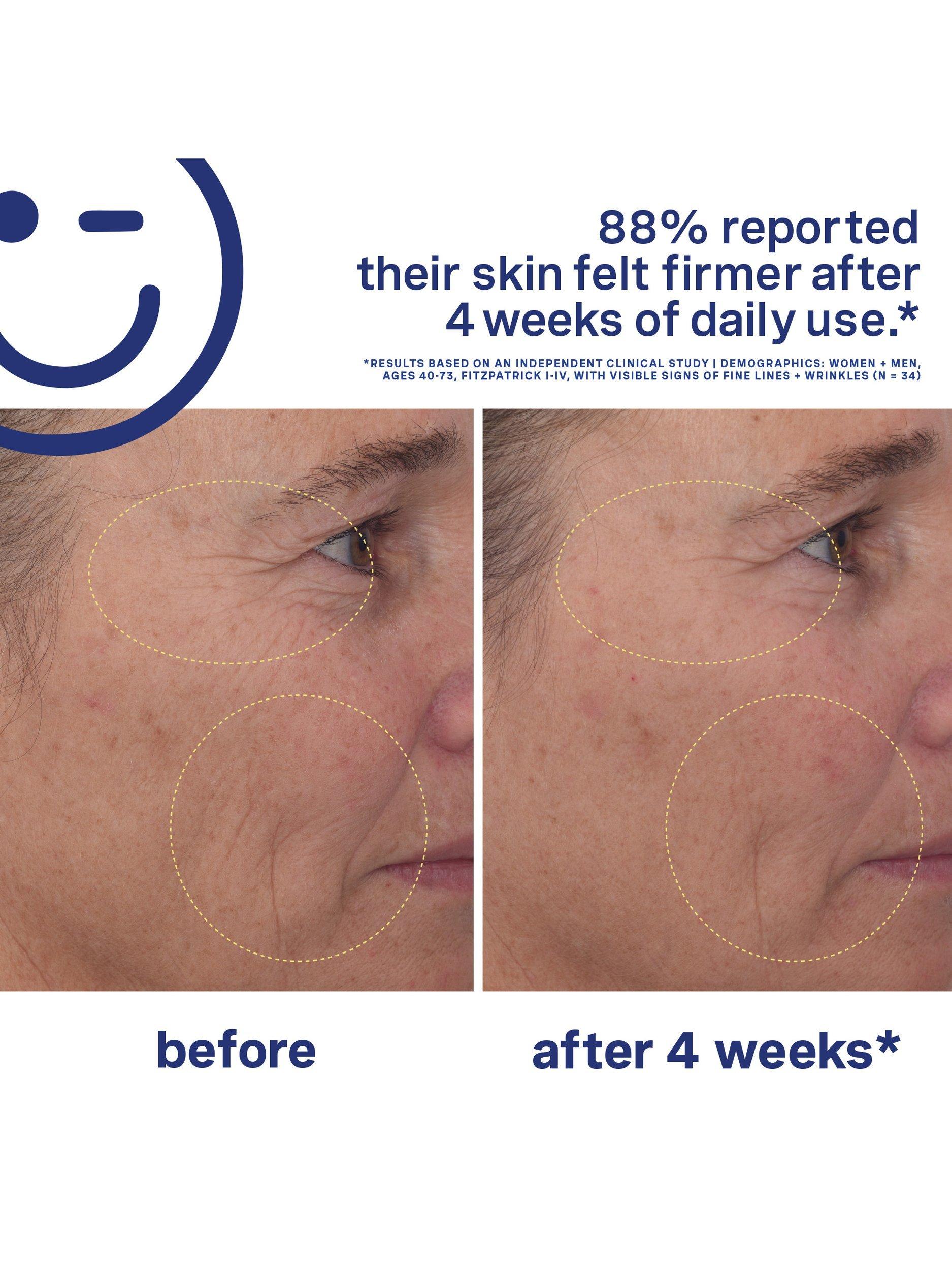 - 88% of women reported their skin felt firmer after 4 weeks of use*