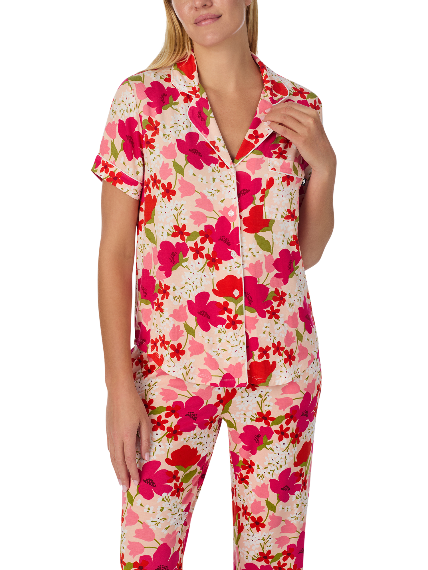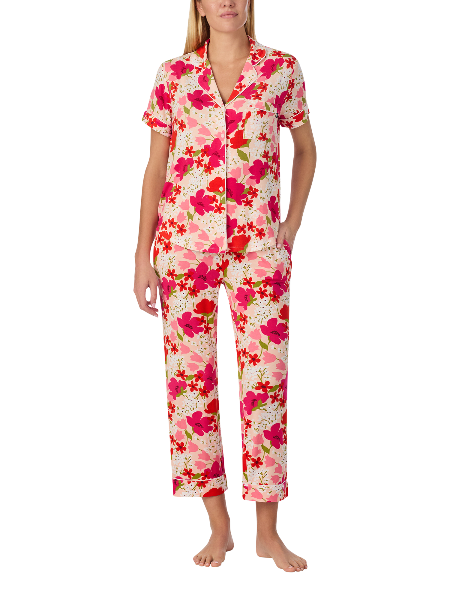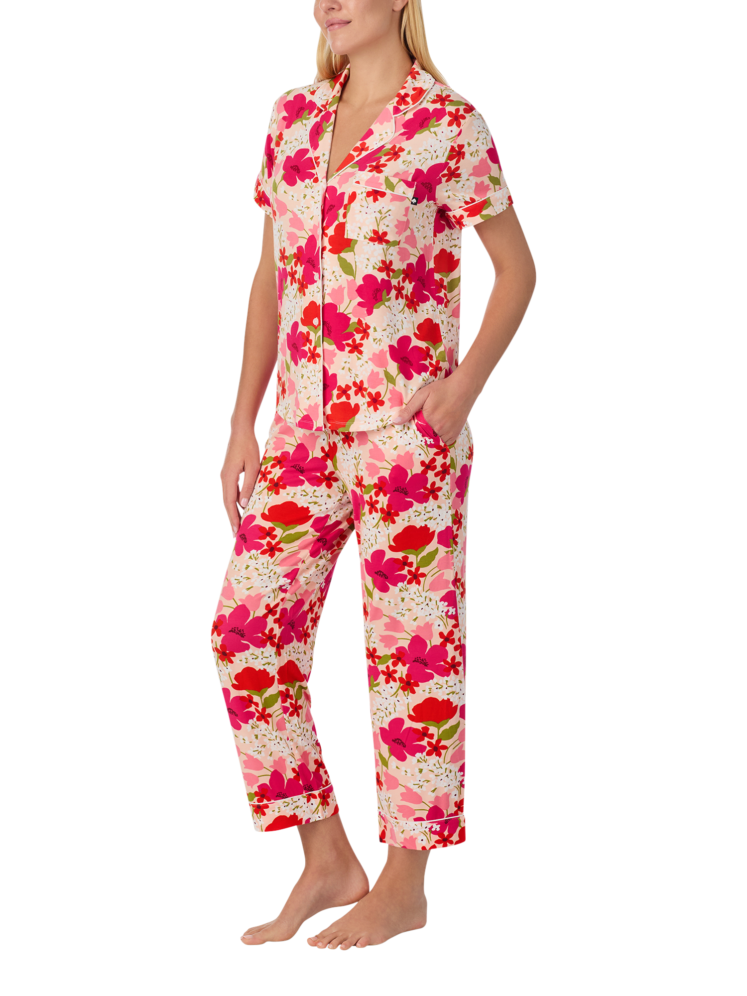 Adding a sense of floral freshness to your nightwear line-up, this short-sleeve pyjama set by kate spade new york ensures optimum comfort with its super soft fabric blend and is finished with cropped trousers.
