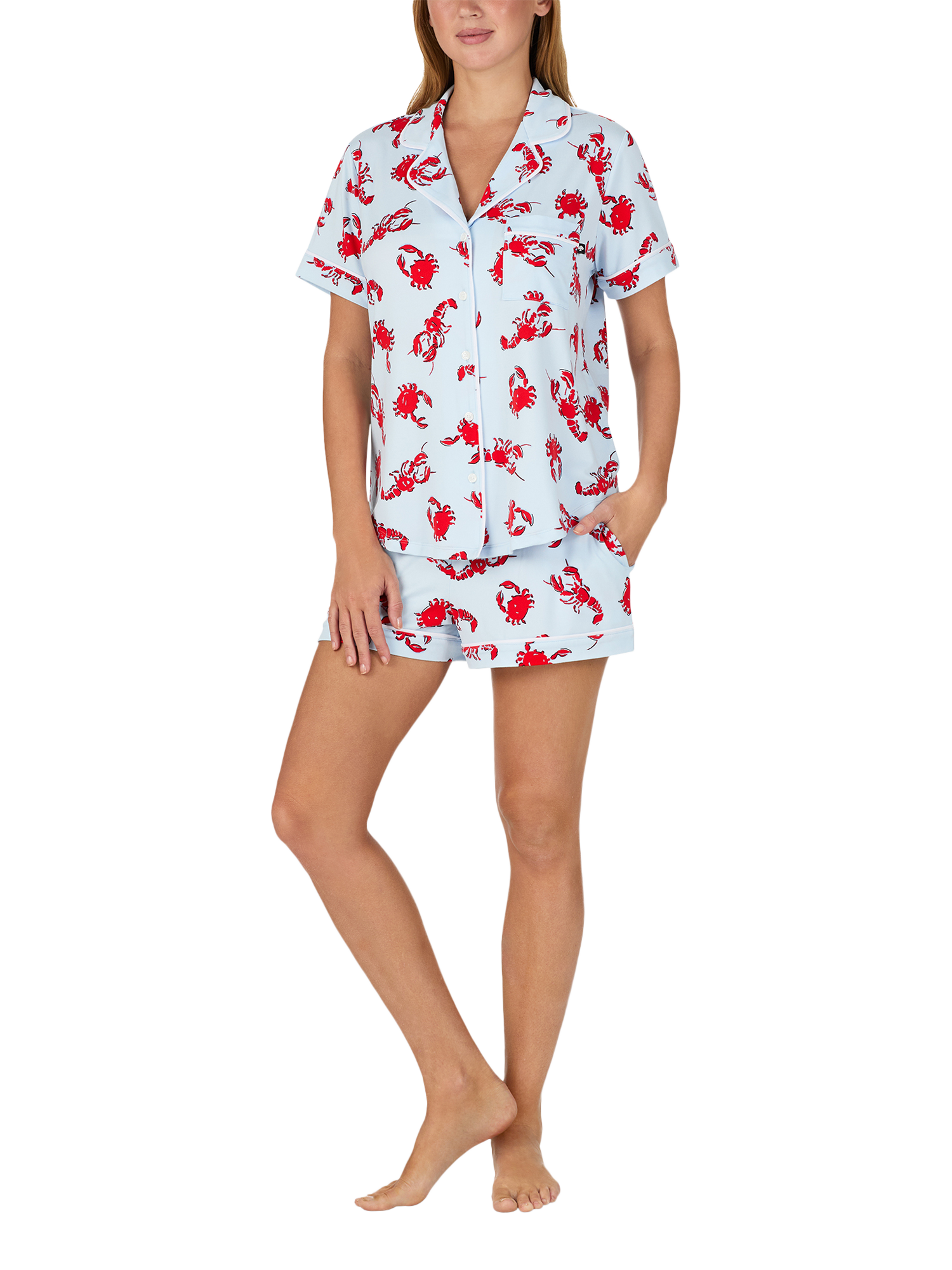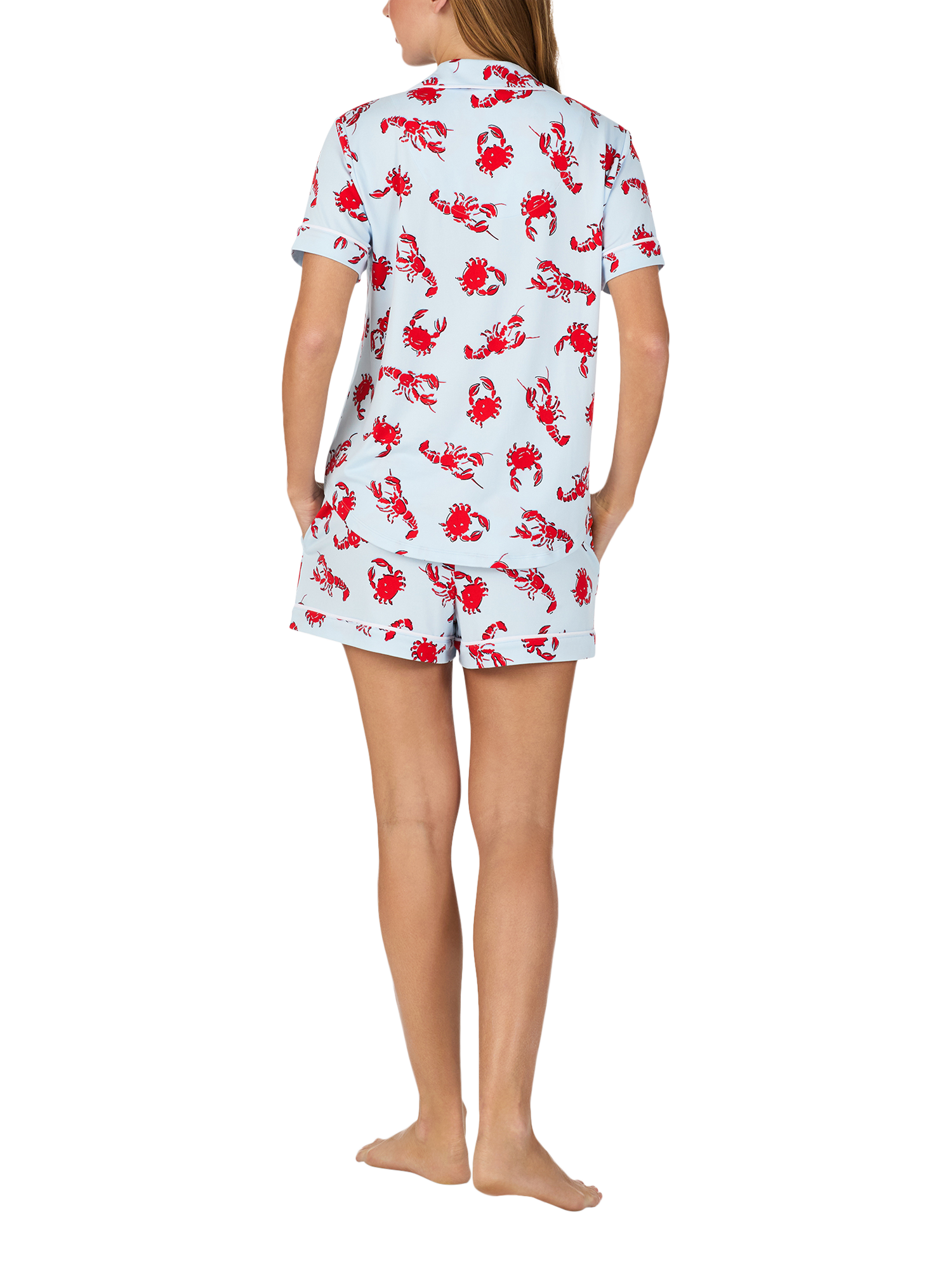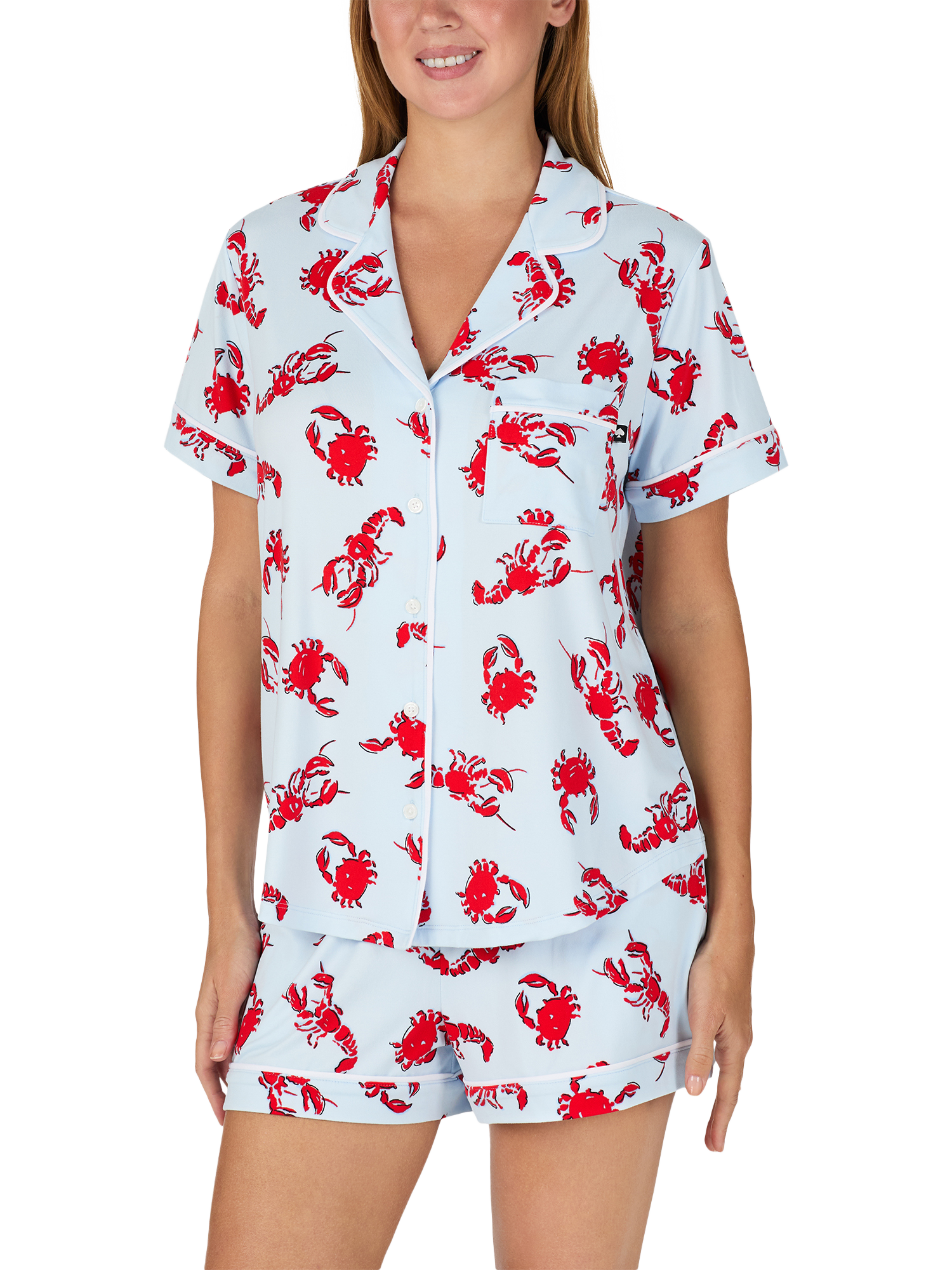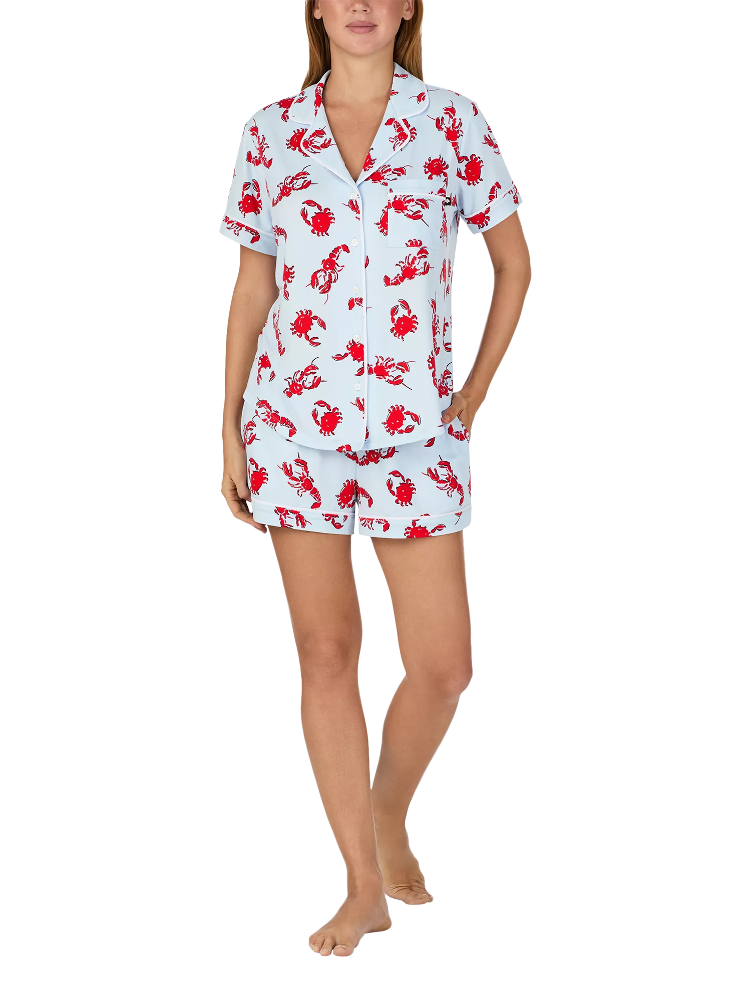 Printed with playful crabs and lobsters, this short-sleeve pyjama set is made from a soft yet durable blend for your lounging comfort.