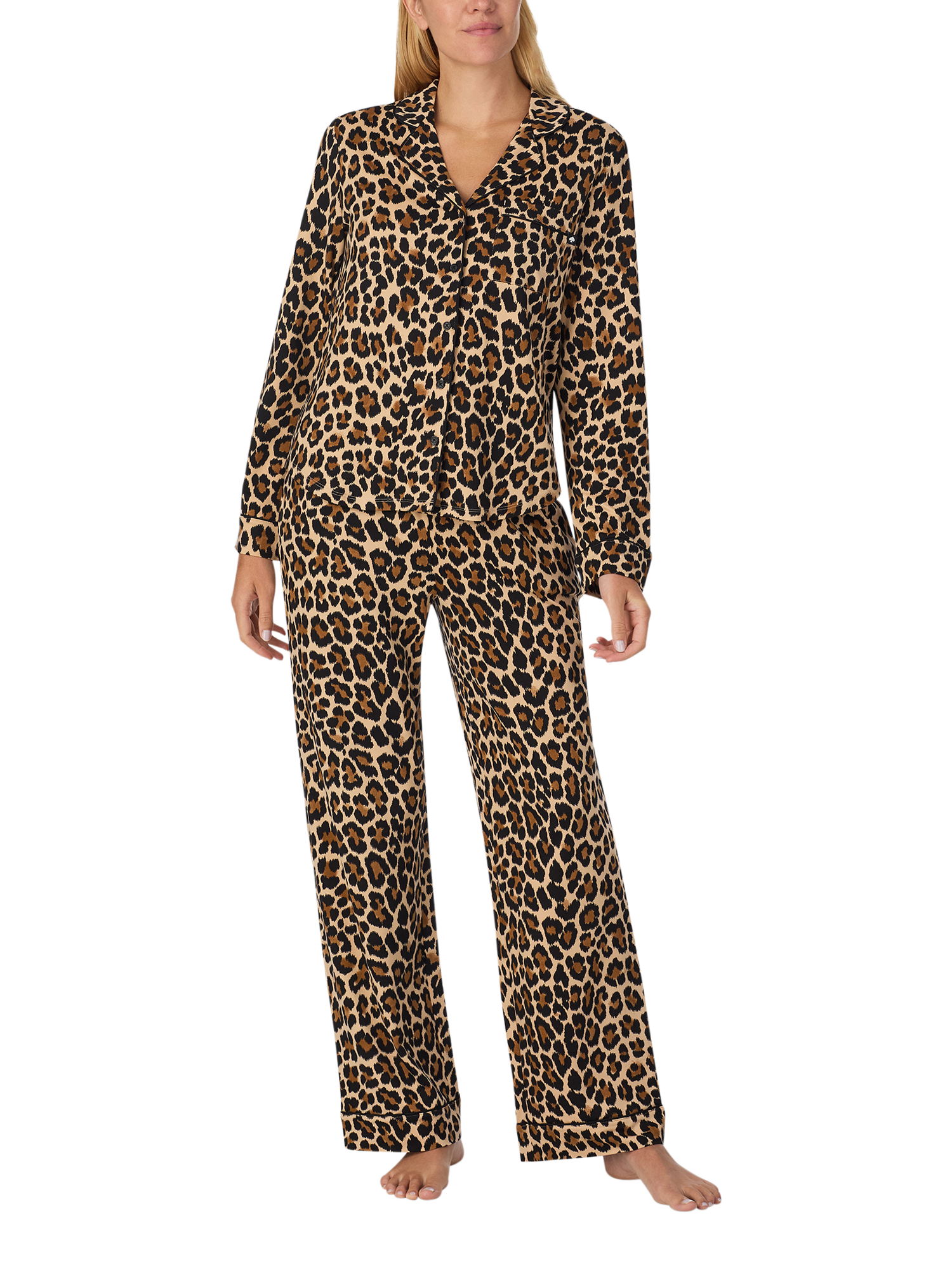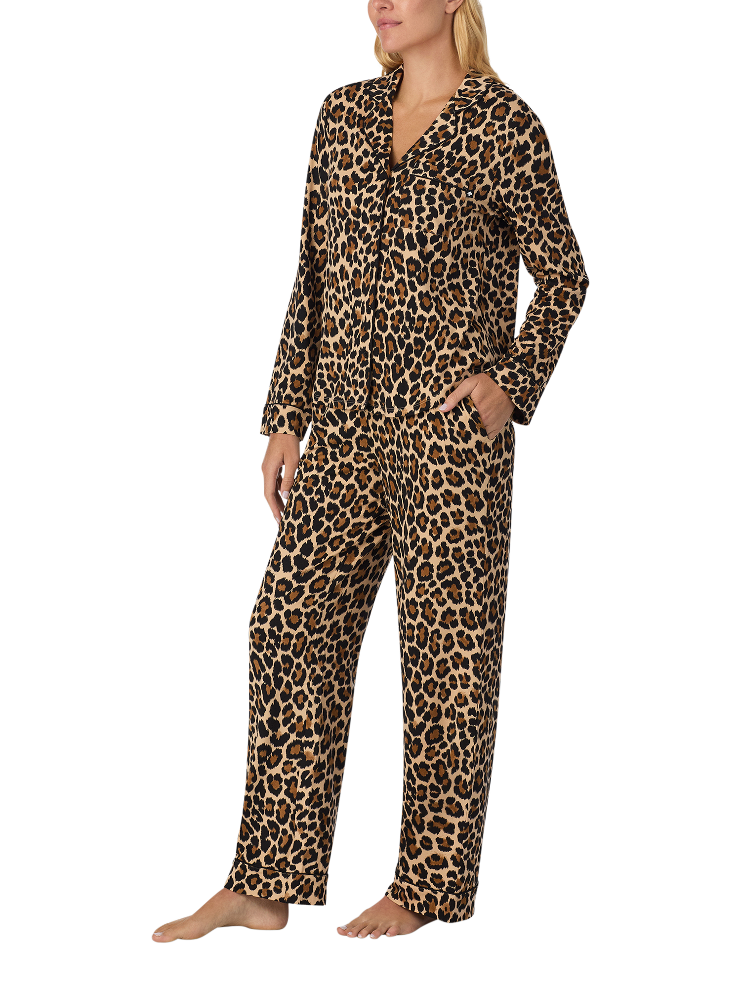 Elevate your loungewear with timeless sophistication and cosy comfort in this dancing leopard PJ set. Featuring a tailored notch collar top and matching bottoms, this set delivers classic charm with a modern twist.