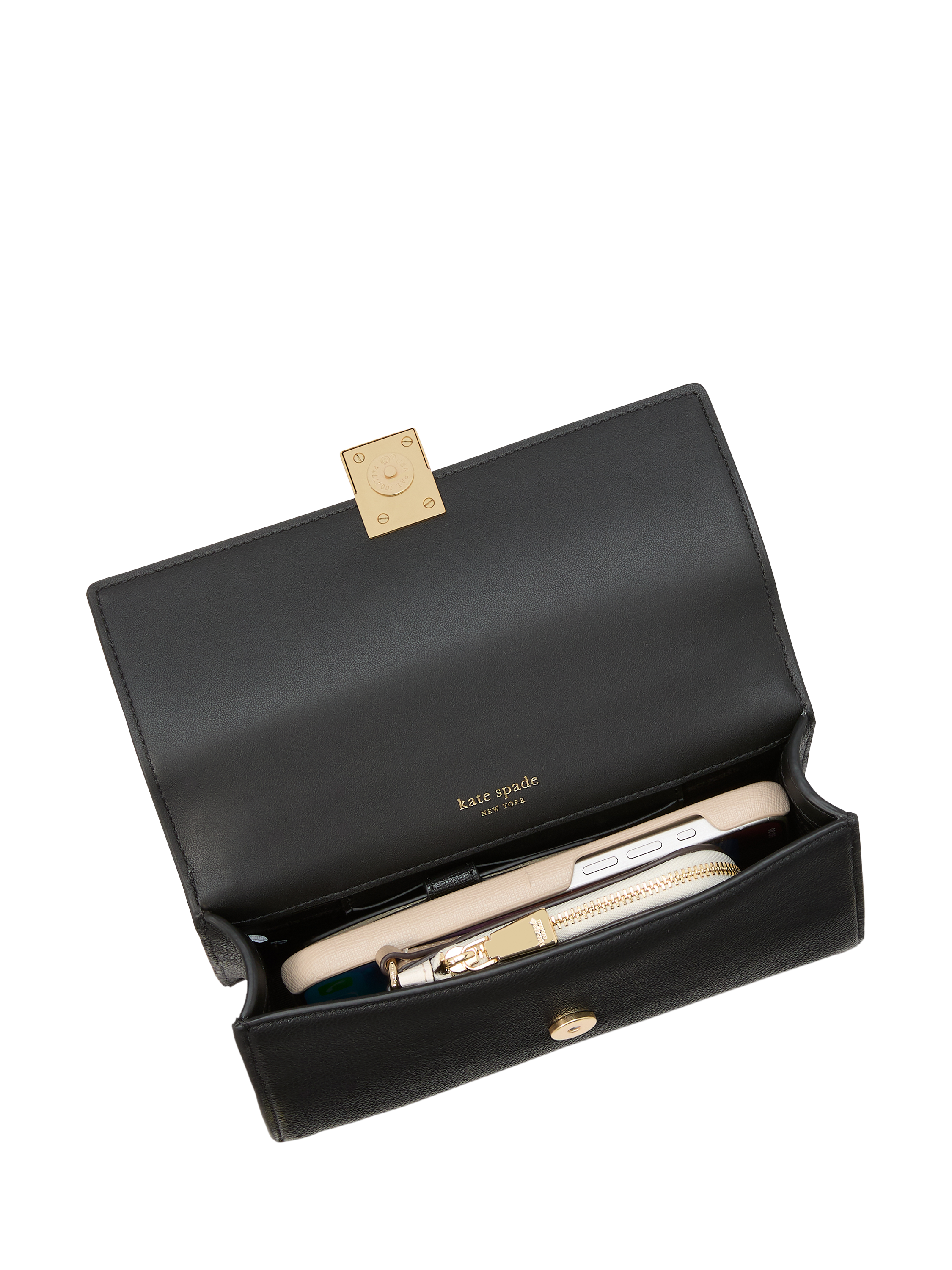 Perennially chic with luxe finishing touches, kate spade new york's Deco collection features elevated staples for both everyday and special occasions. This mini crossbody is made from pebbled leather with new hardware inspired by Art Deco style.