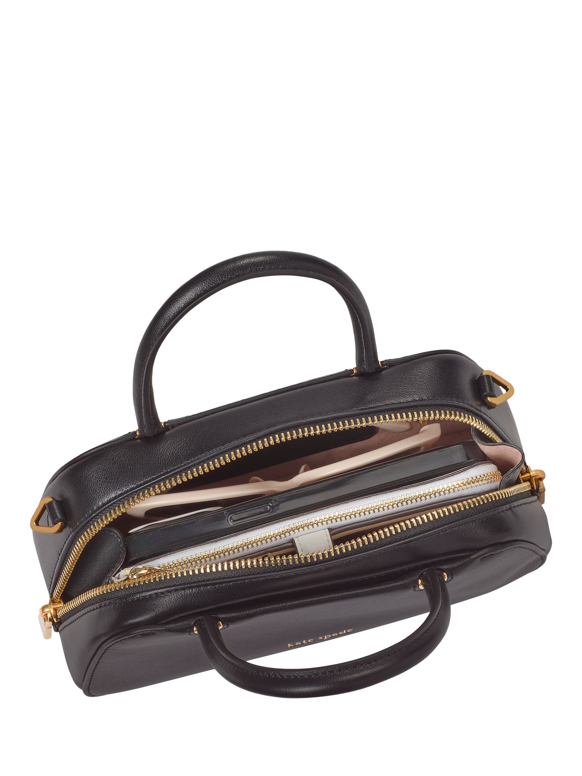 Meet Grace. Done in smooth leather, this pochette from kate spade new york is equal parts structured, chic and endlessly versatile. Designed with two top handles, zip fastening and detachable strap.