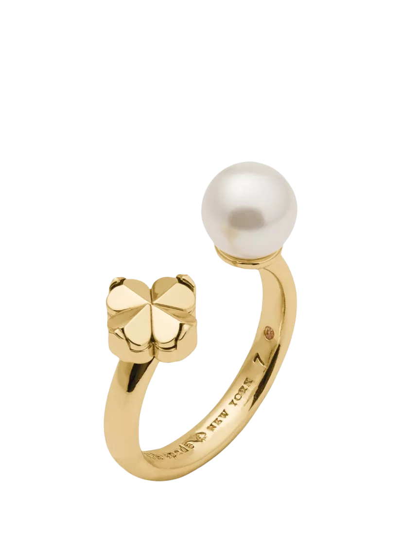 A spin on the brand's iconic logo, this eye-catching ring featuring pearl detailing on one side of the open-ended band, crafted in gold-plated brass.