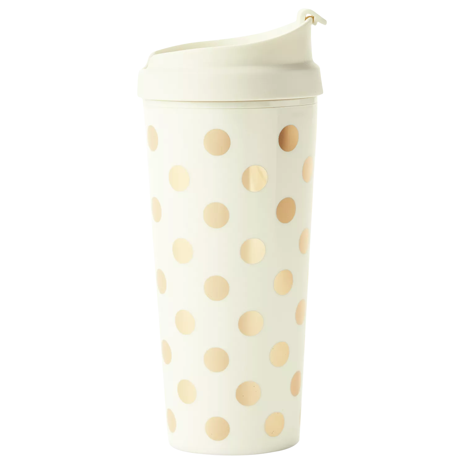 Drink your coffee and tea on the go in style with this chic thermal mug by kate spade new york. Featuring a gold and white polka dot motif, this piece is equal parts functional and chic.