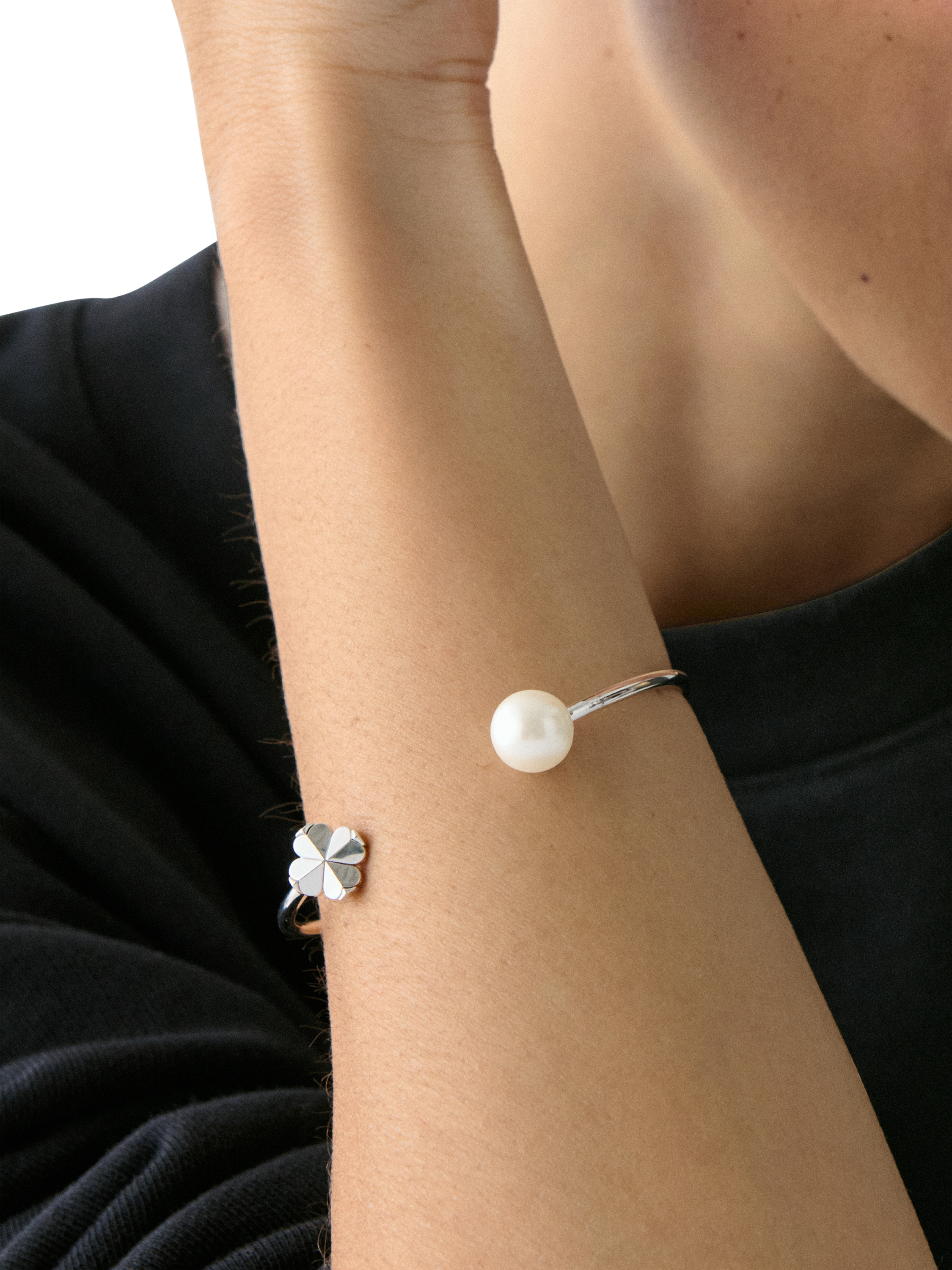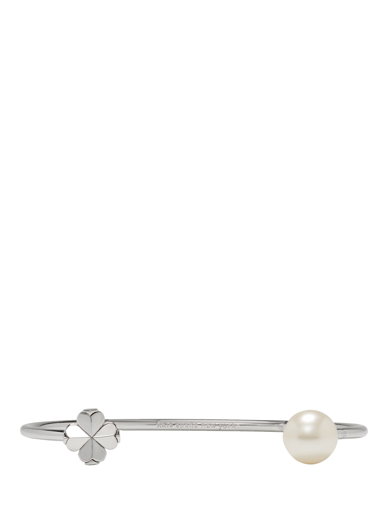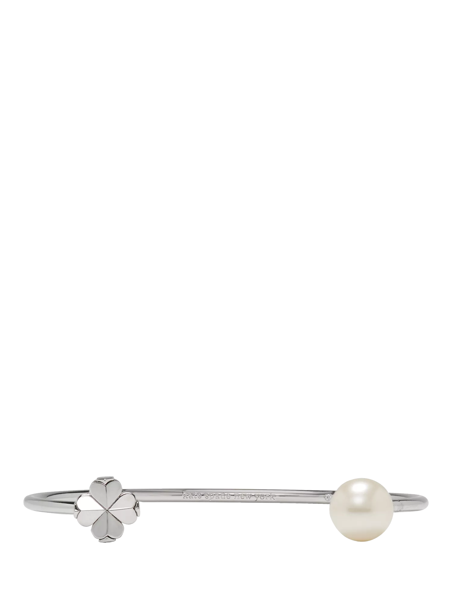 Crafted in silver plating, this charming cuff from kate spade showcases pearl and flower detailing, adding a sophisticated touch to any outfit. Designed in an open-ended style.
