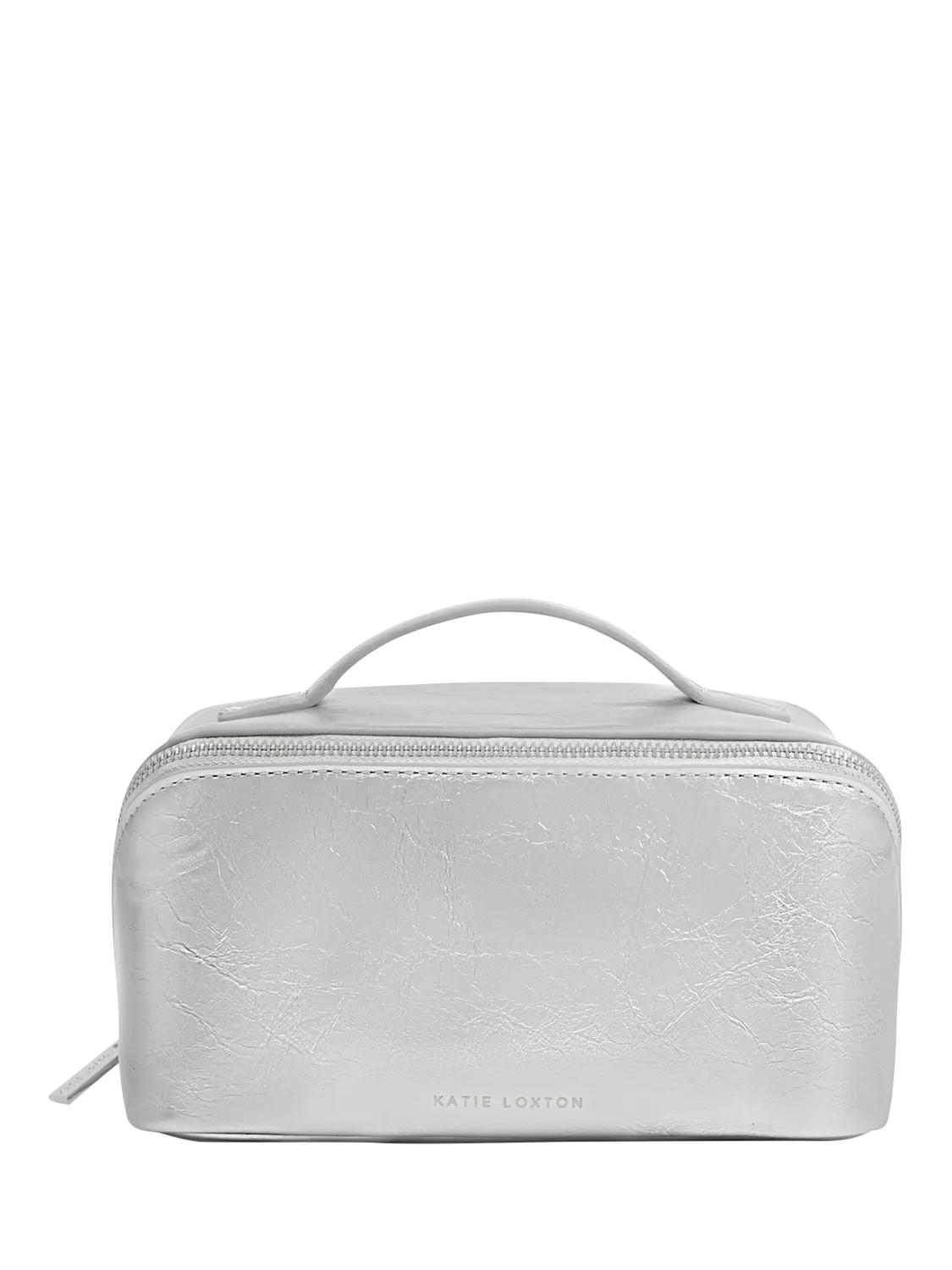 Level up your get-ready routine with the Medium Makeup and Wash Bag from Katie Loxton. Featuring a metallic patent crackle material, a zip-around closure for effortless access, and a wipeable lining to handle any spills with ease. Designed with makeup enthusiasts in mind, it lays flat on any surface and reveals central dividers and pockets for seamless organisation. The perfect blend of style and function.