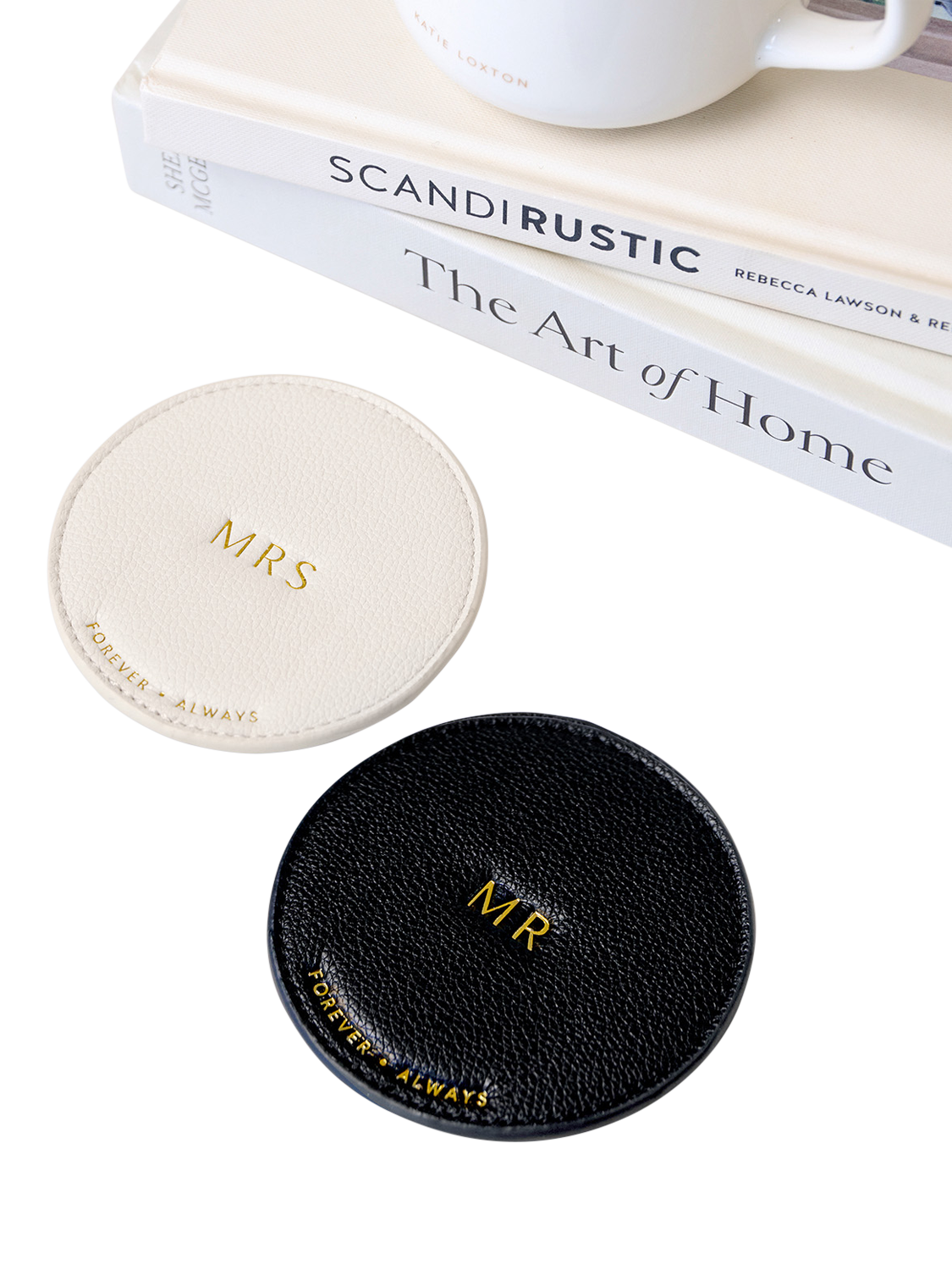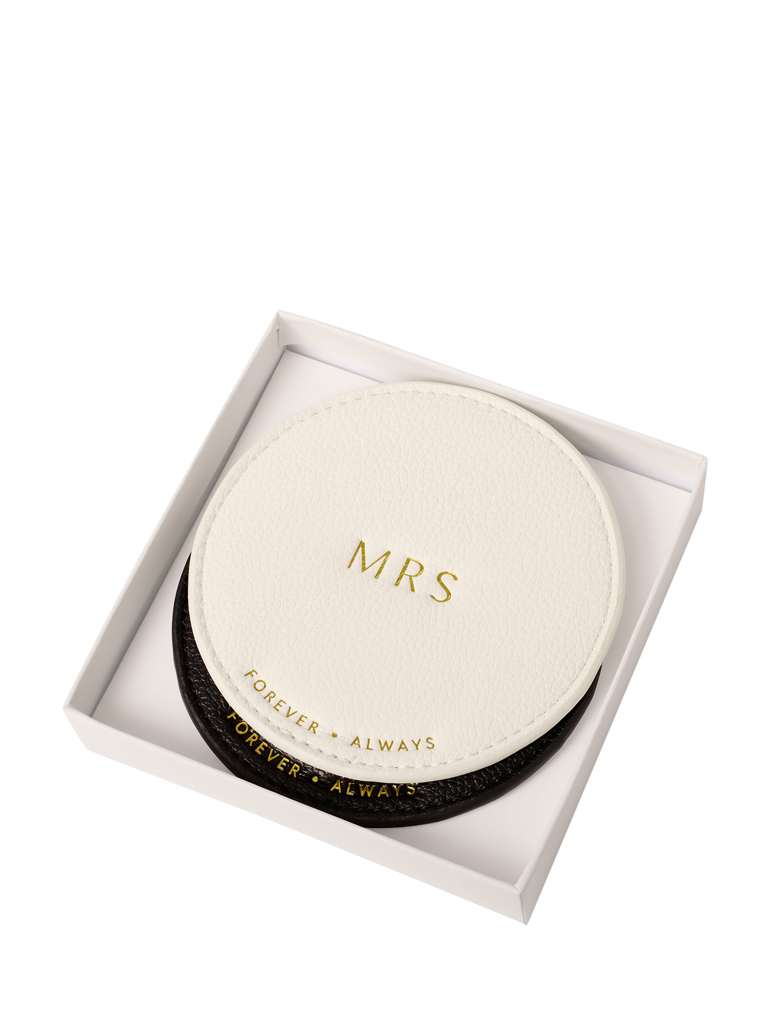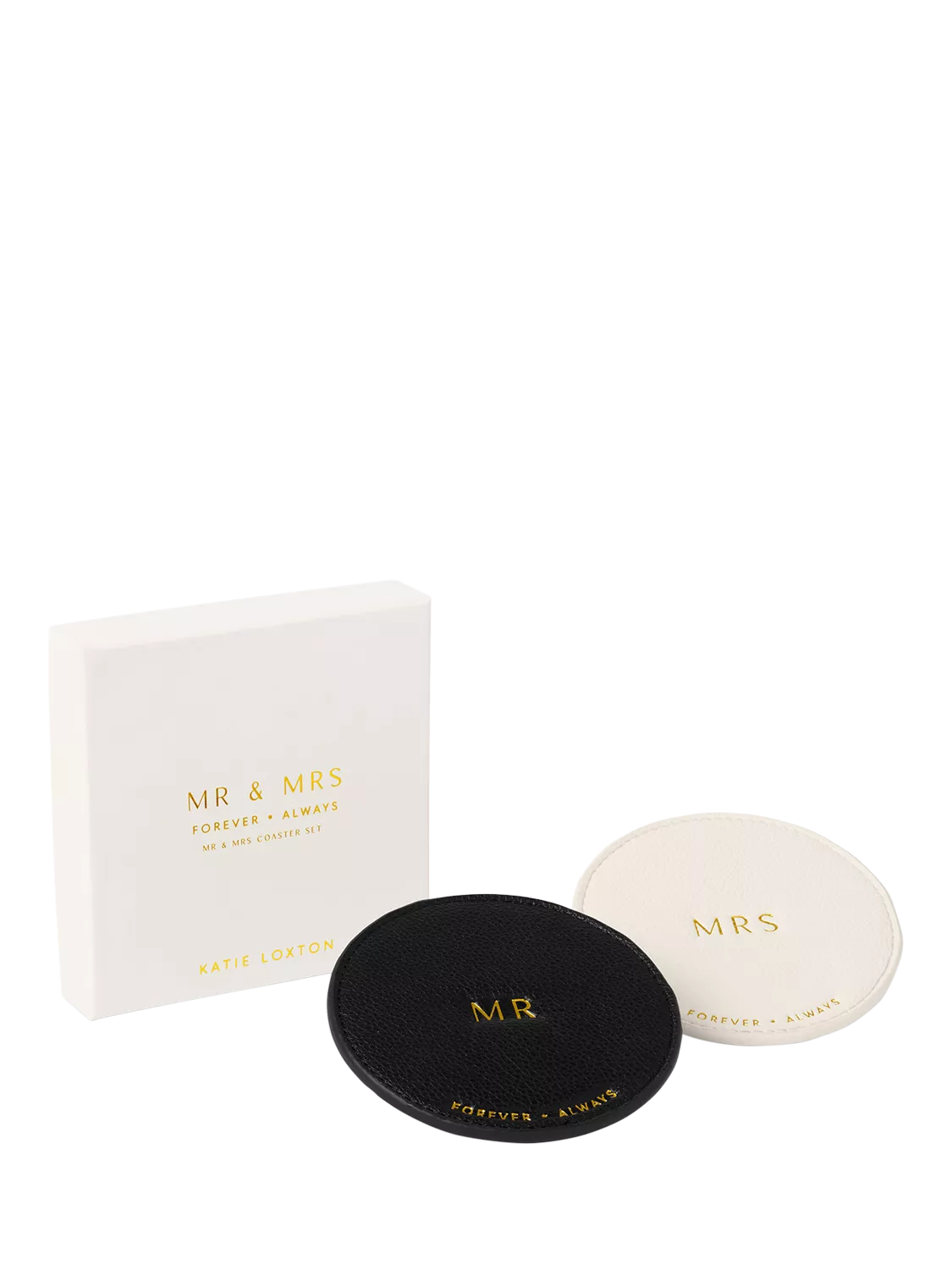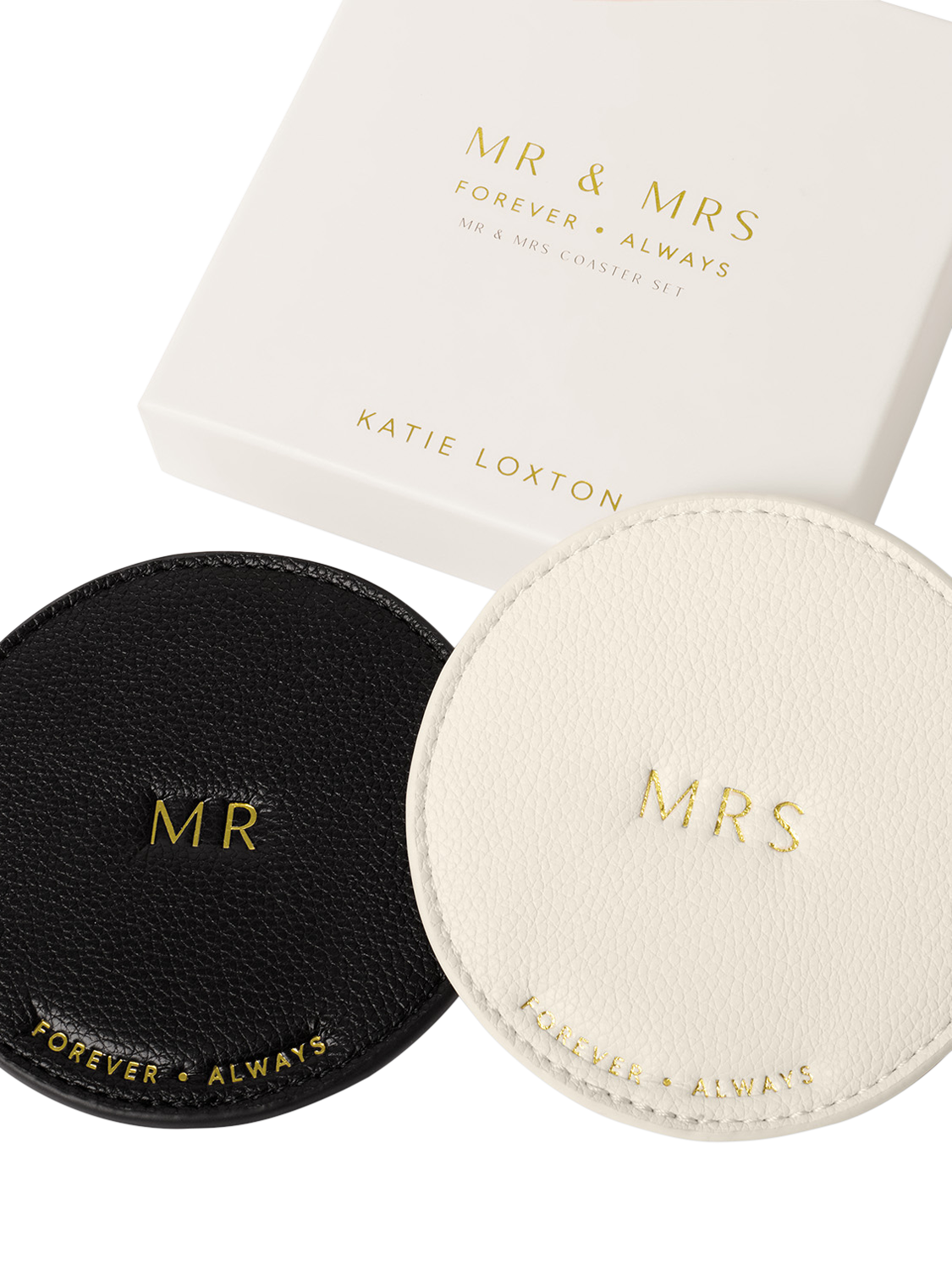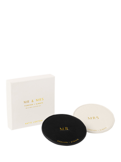 This Mr & Mrs coaster set from Katie Loxton is the perfect gift for the happy couple. Featuring stamped golden sentiments and beautifully packaged in a chic gift box, it's a thoughtful addition to any celebration of love.
