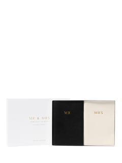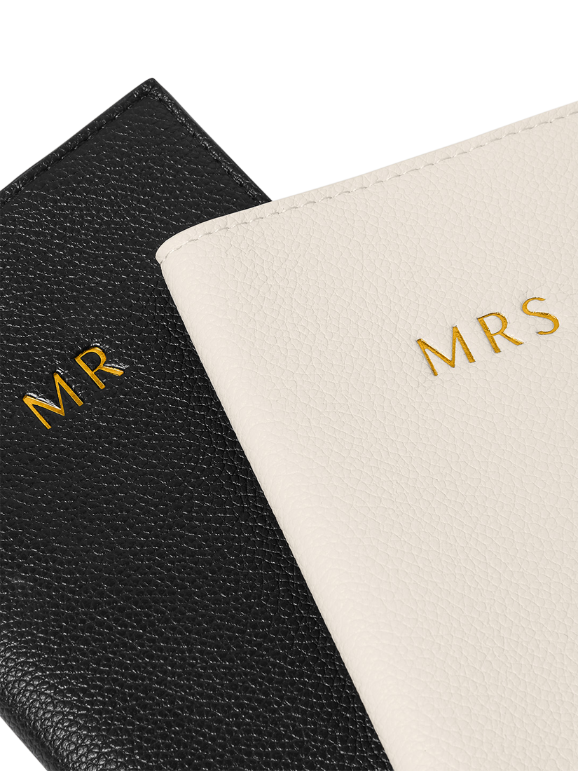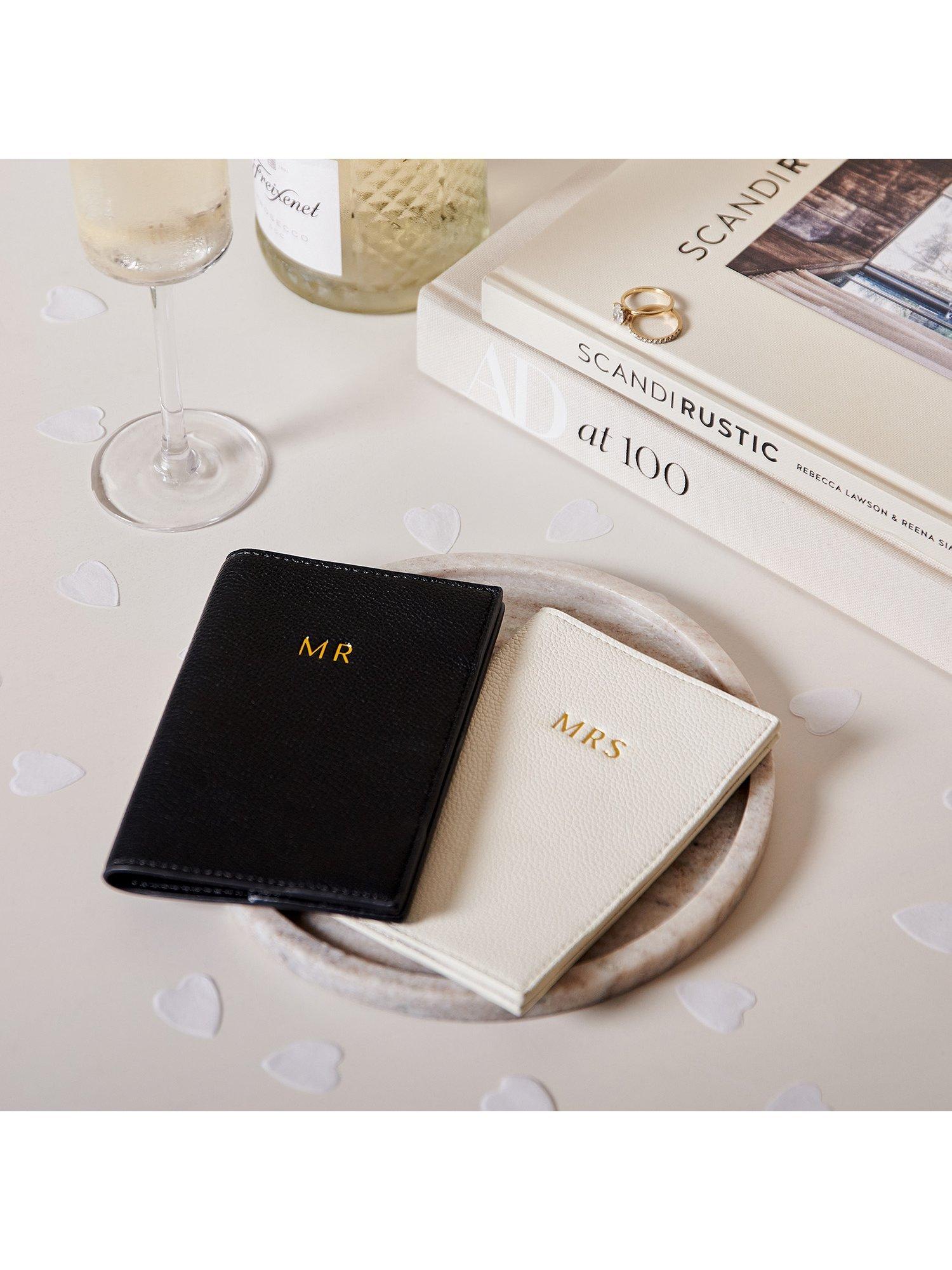 This bridal passport set from Katie Loxton makes the perfect wedding gift. Featuring two vegan leather passport covers, one for "Mr" and one for "Mrs", complete with charming golden detailing, these covers add a touch of elegance to the couple's honeymoon journey.