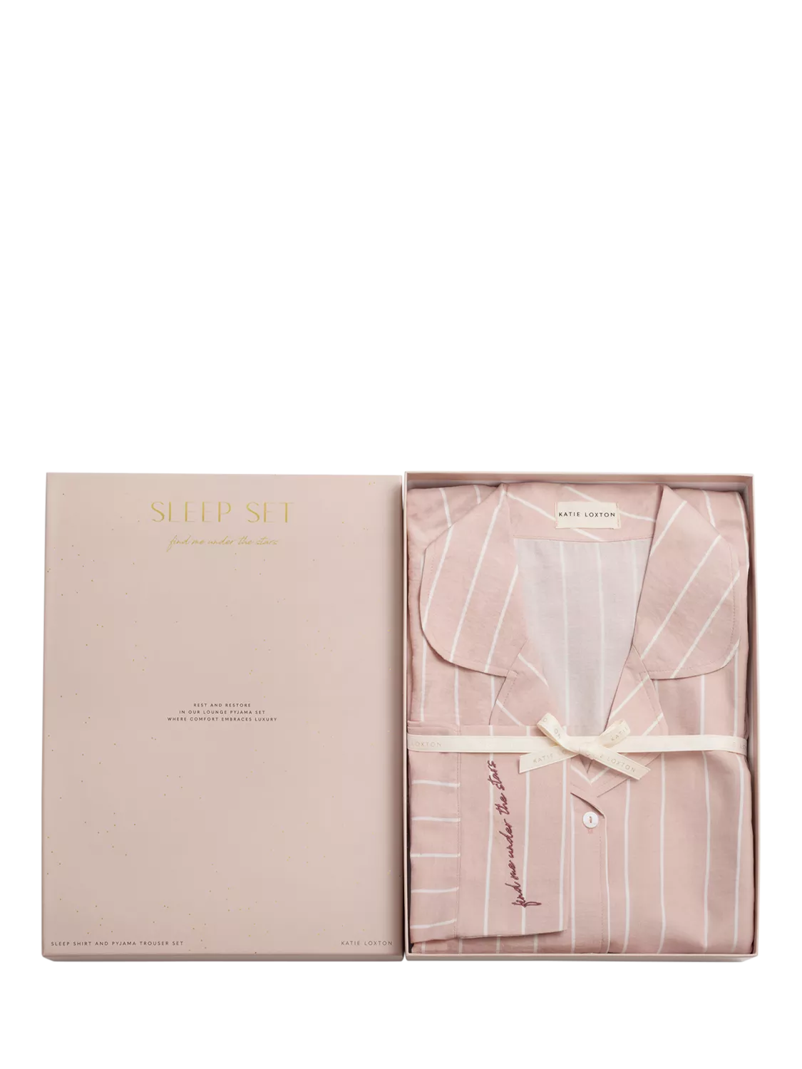 Katie LoxtonStripe Button Down Long Pyjama Set, Pink Stripe