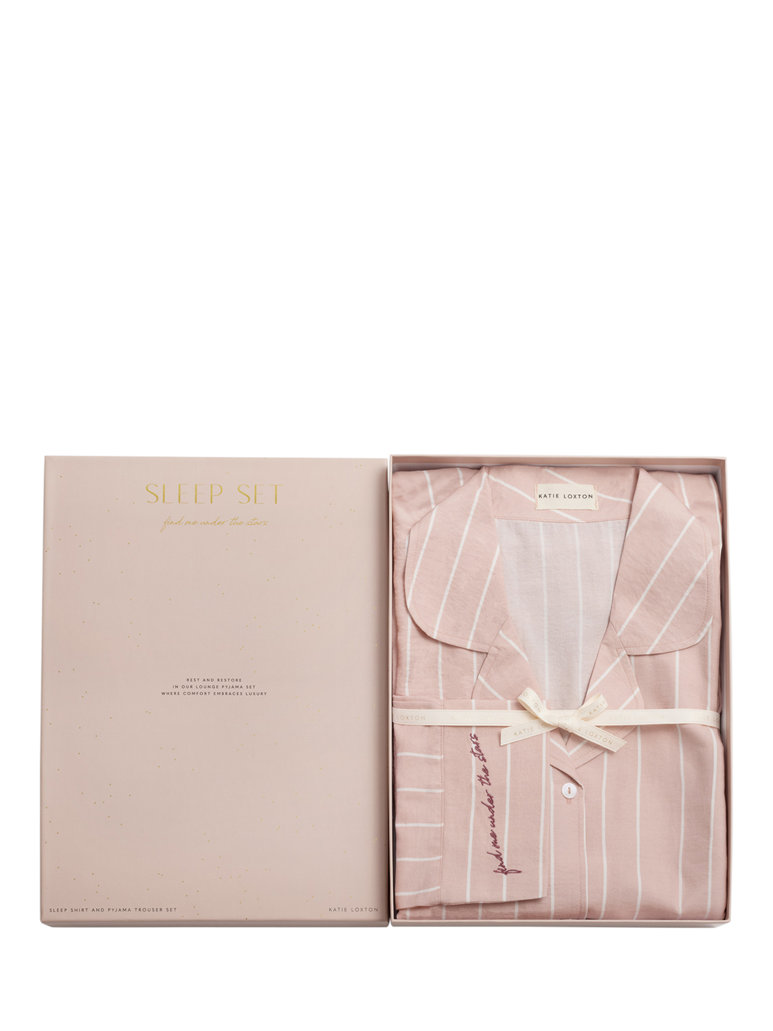 The luxurious Stripe Print Pyjama Gift Set from Katie Loxton is made from lightweight, breathable crepe de chine for comfortable wear all year round. The set features beautifully branded cuff detailing with the sentiment ‘Find Me Under the Stars’. Wrapped in a sentiment-stamped gift box, they make the perfect gift or a lovely treat for yourself.
