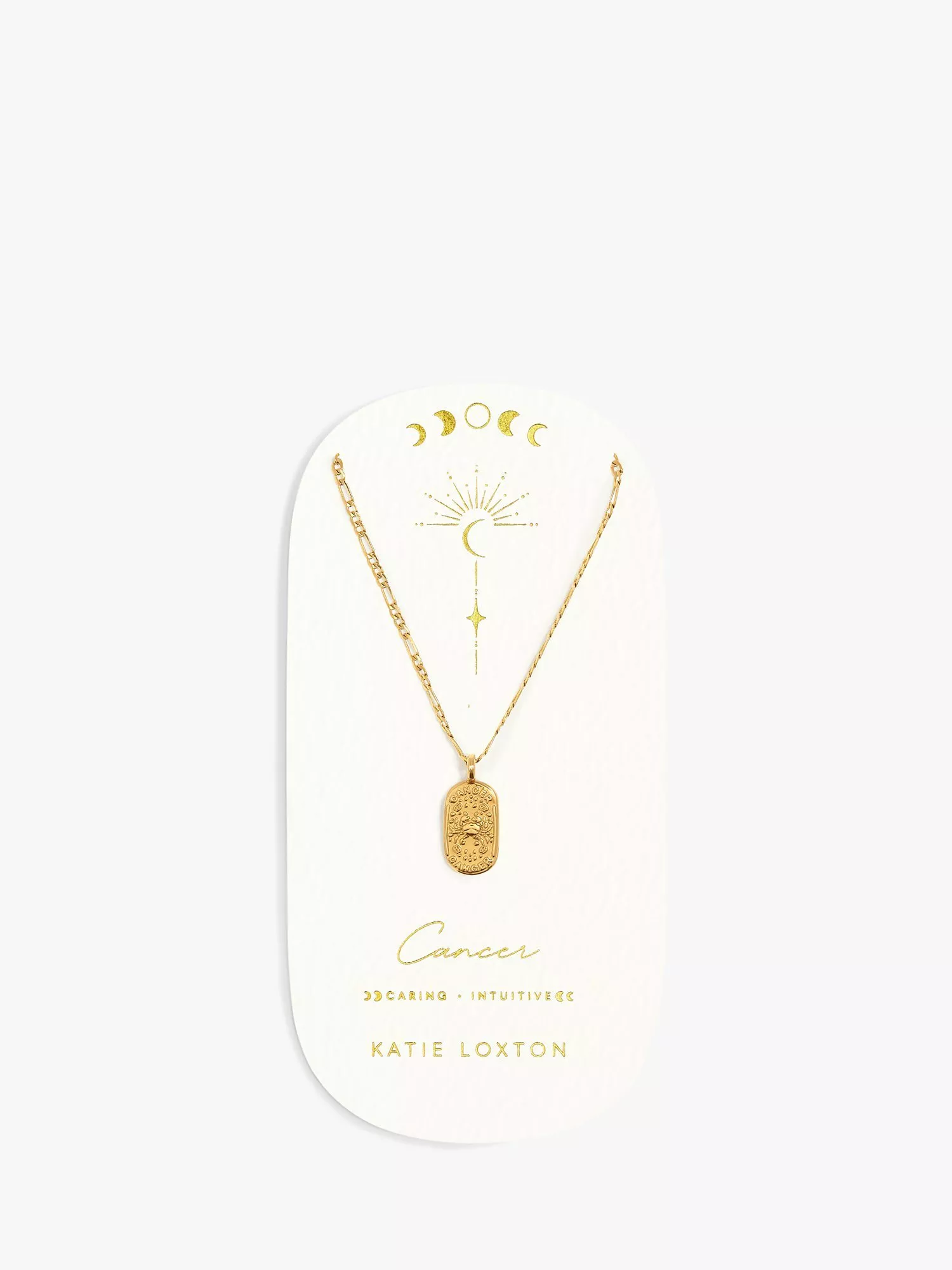 Add some celestial magic to your jewellery box with the this Waterproof Gold Zodiac Necklace from Katie Loxton. Presented on a premium card printed with the zodiac and its unique personality traits, this captivating necklace showcases the unique engraved symbol of the star sign. Made with durable 18K Gold PVD Coating, it is waterproof, sweat proof, and life proof.