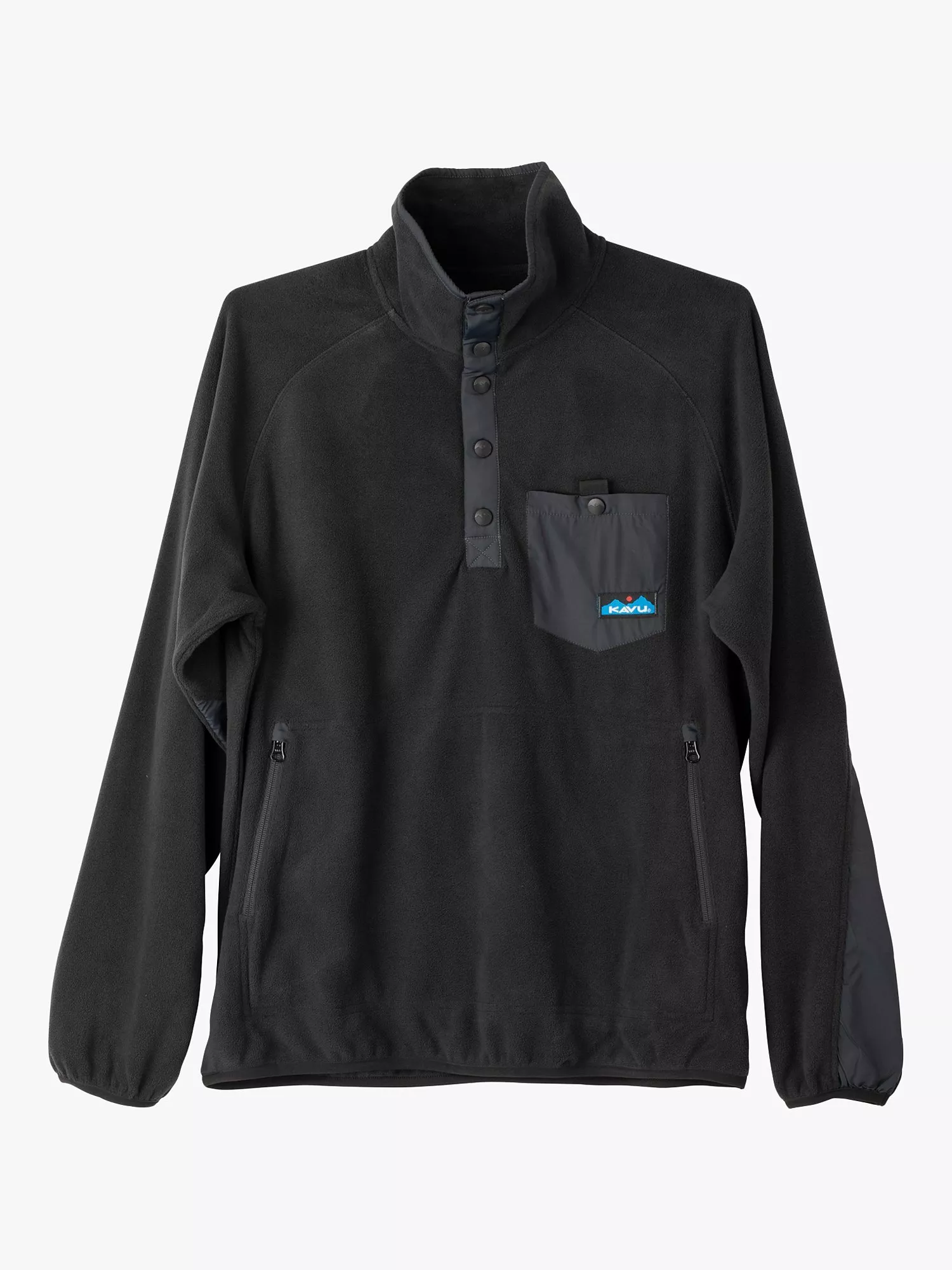 Casual in fit for easy styling, this half-button mock neck sherpa fleece pullover from KAVU is the layer your Mumma told you to take with you. Featuring a corduroy pieced chest welt zip pocket, KAVU has included pass-through hand welt pockets that are perfect for keeping your hands toasty. Designed for keeping the cold at bay during city and country adventures, this fleece pullover has ribbed detailing at the cuff and hem.