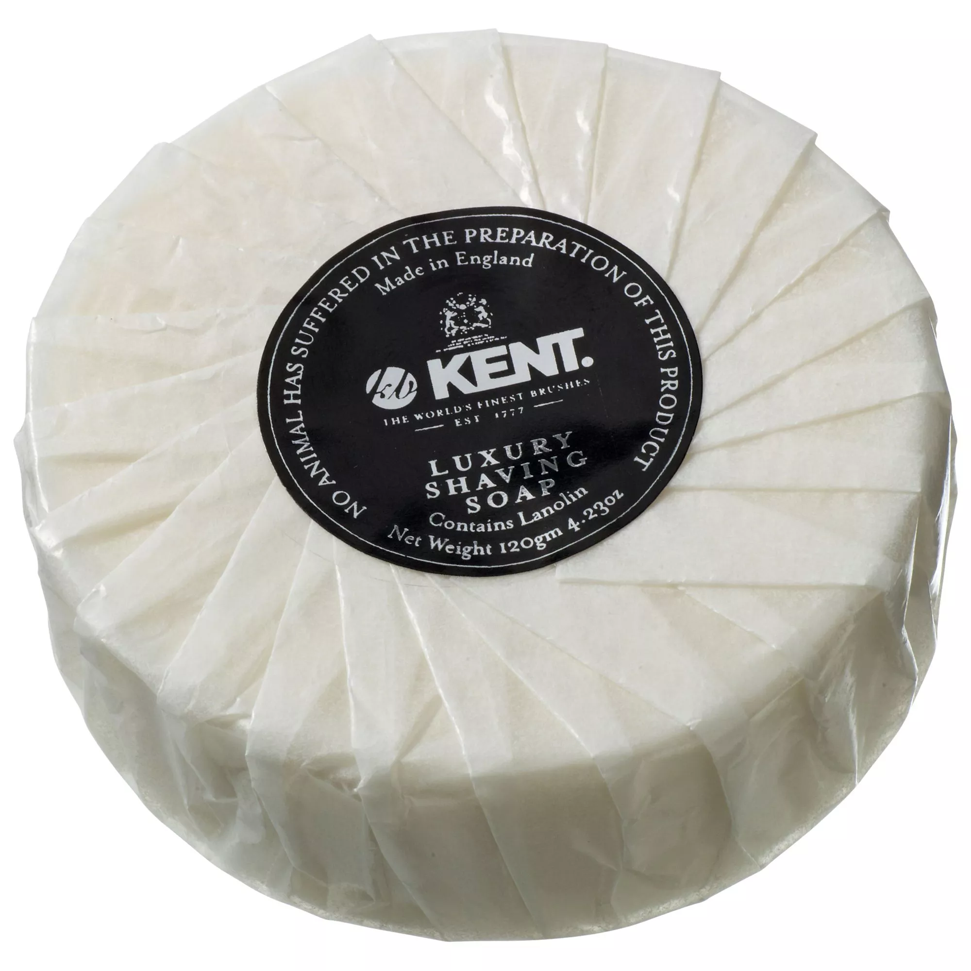 A tablet of luxury shaving soap for use with bristle brushes, from Kent. Enriched with a fine fougere fragrance with pine, clove and lavender extracts, on a base of cedardwood, nutmeg, sandalwood, vanilla and musk.