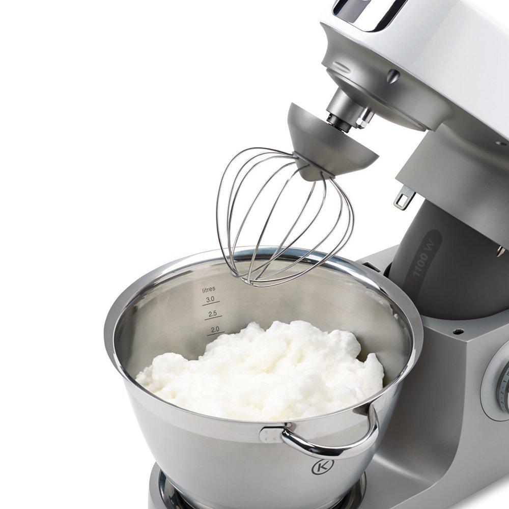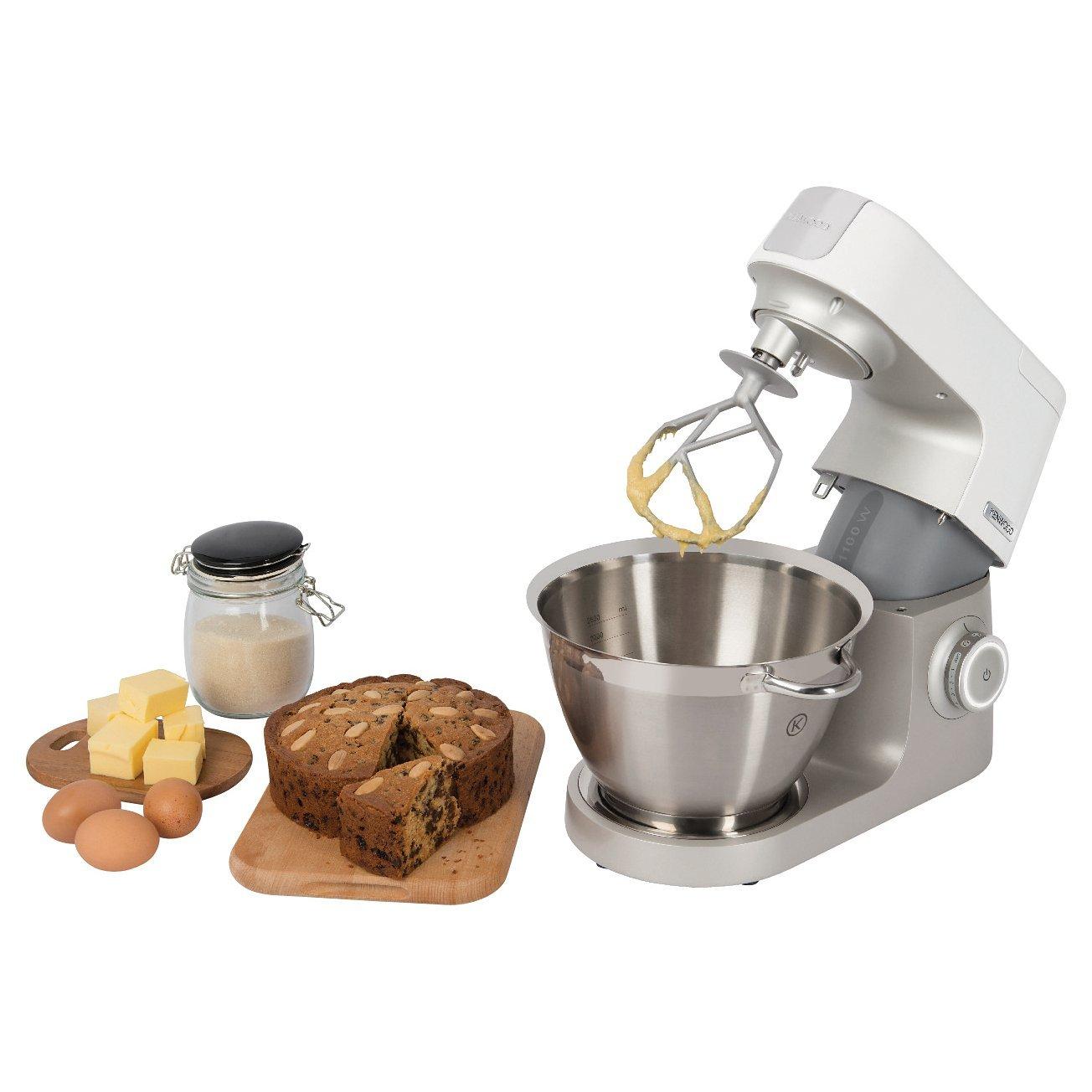 The sleek full metal body and painted sliver and gloss white finish tops off this sturdy Kenwood mixer. Designed and engineered in the UK.