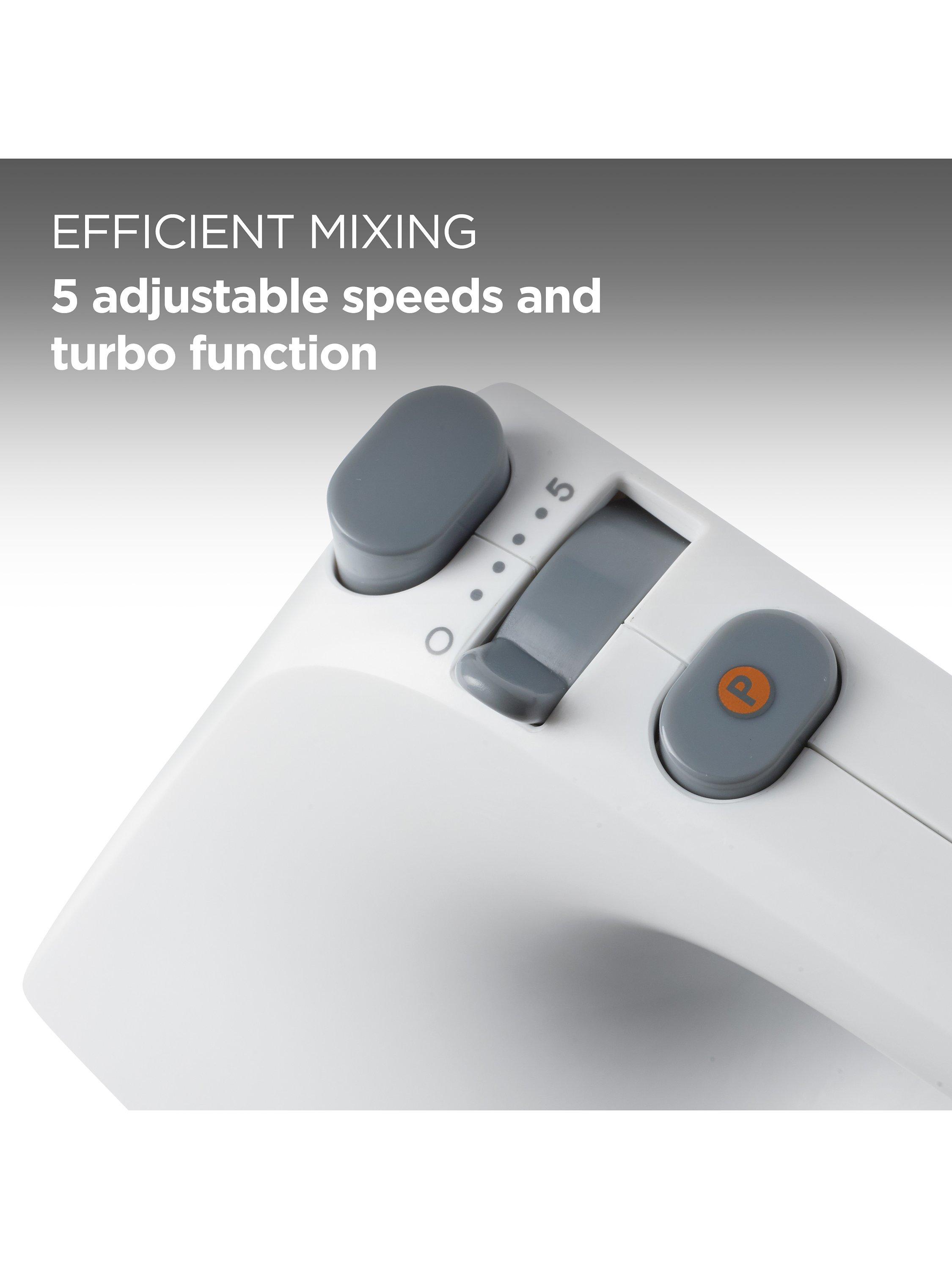A stylish and surprisingly compact hand mixer promising quality performance and delicious results! Let your handy kitchen assistant do all the hard work. Includes metal whisks and metal kneaders.