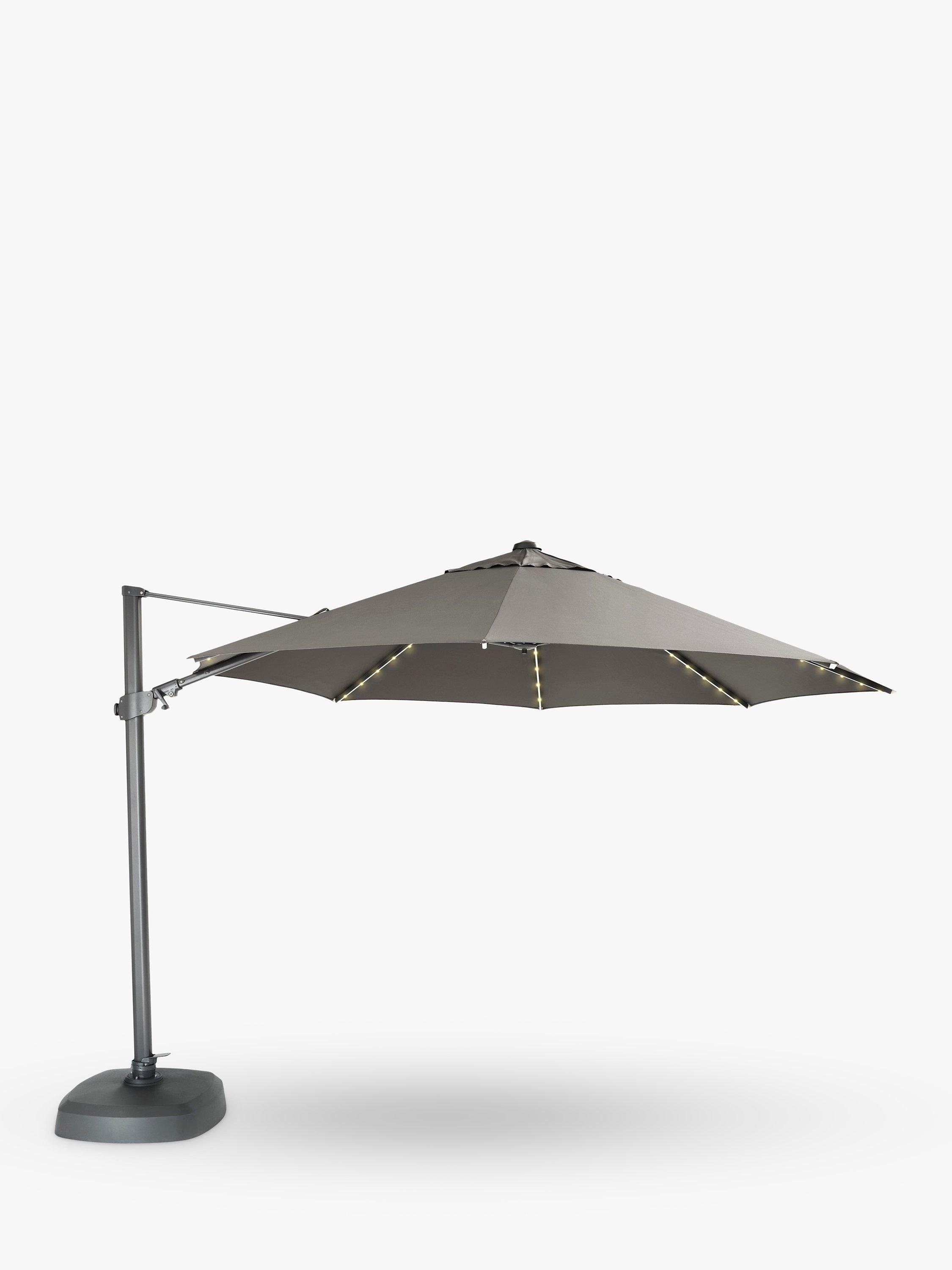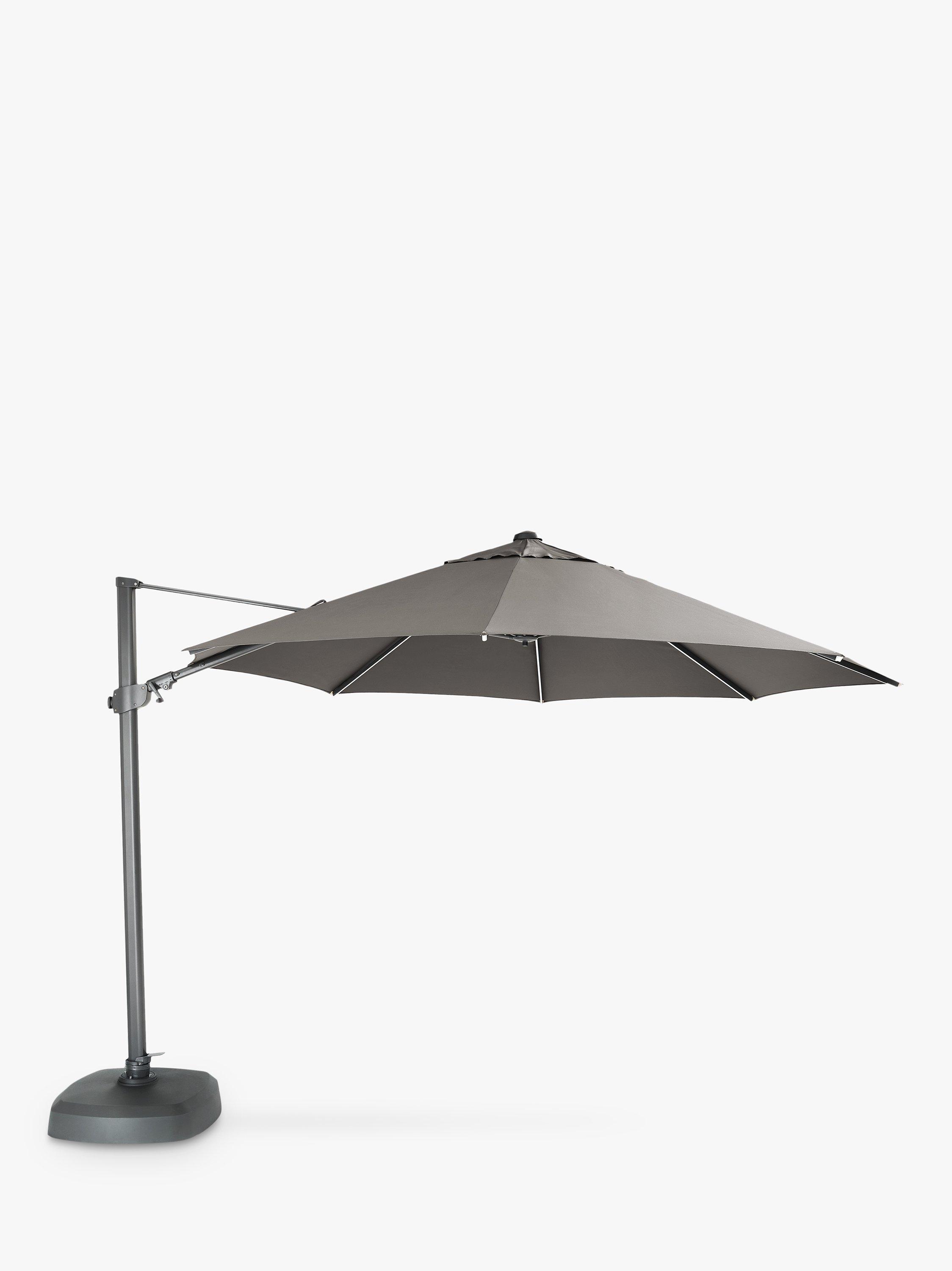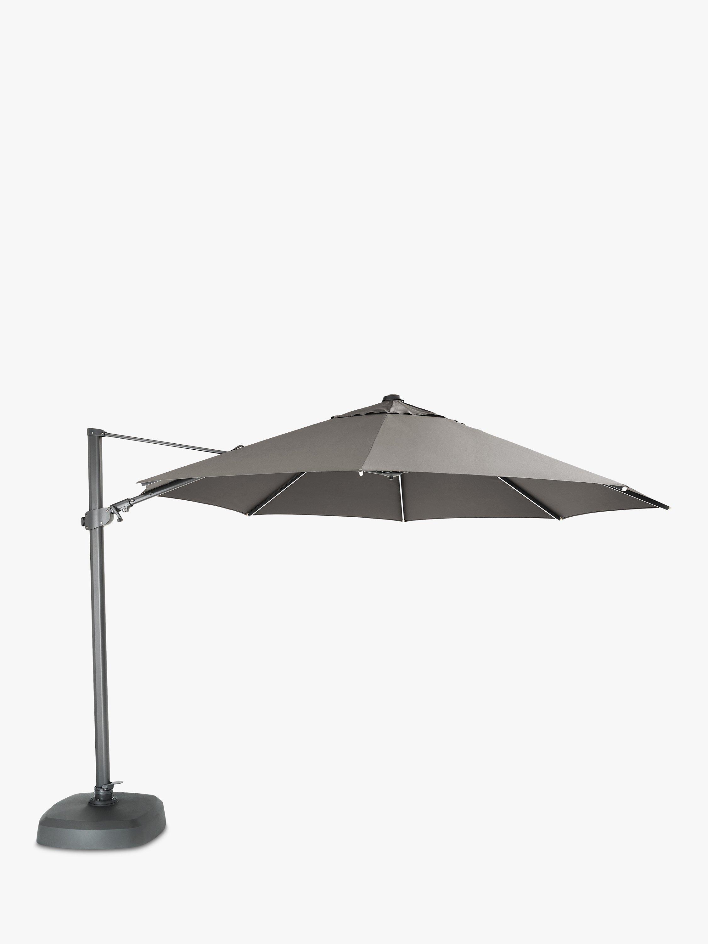 The easy wind-out mechanism has 6 locking positions for choosing the right shade with a pull pin for rear tilt adjustment and selecting the best coverage and shade. With 270° free-arm rotation, the base doesn't need to be moved when raising and lowering the parasol. It's made with a durable, lightweight, rust-proof aluminium pole and a shower-resistant canopy offering UV50+ sun protection.