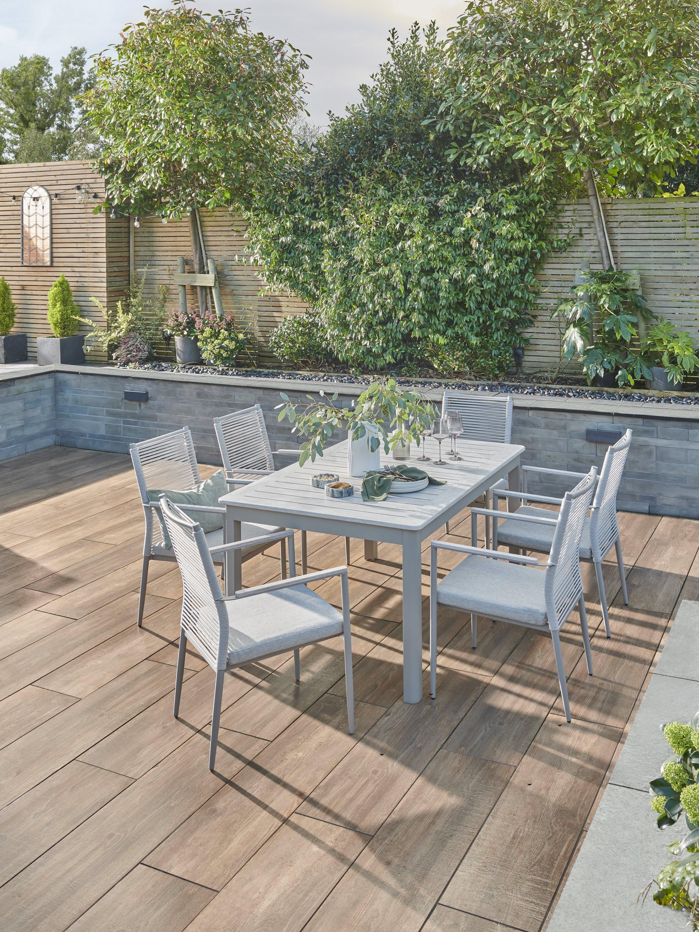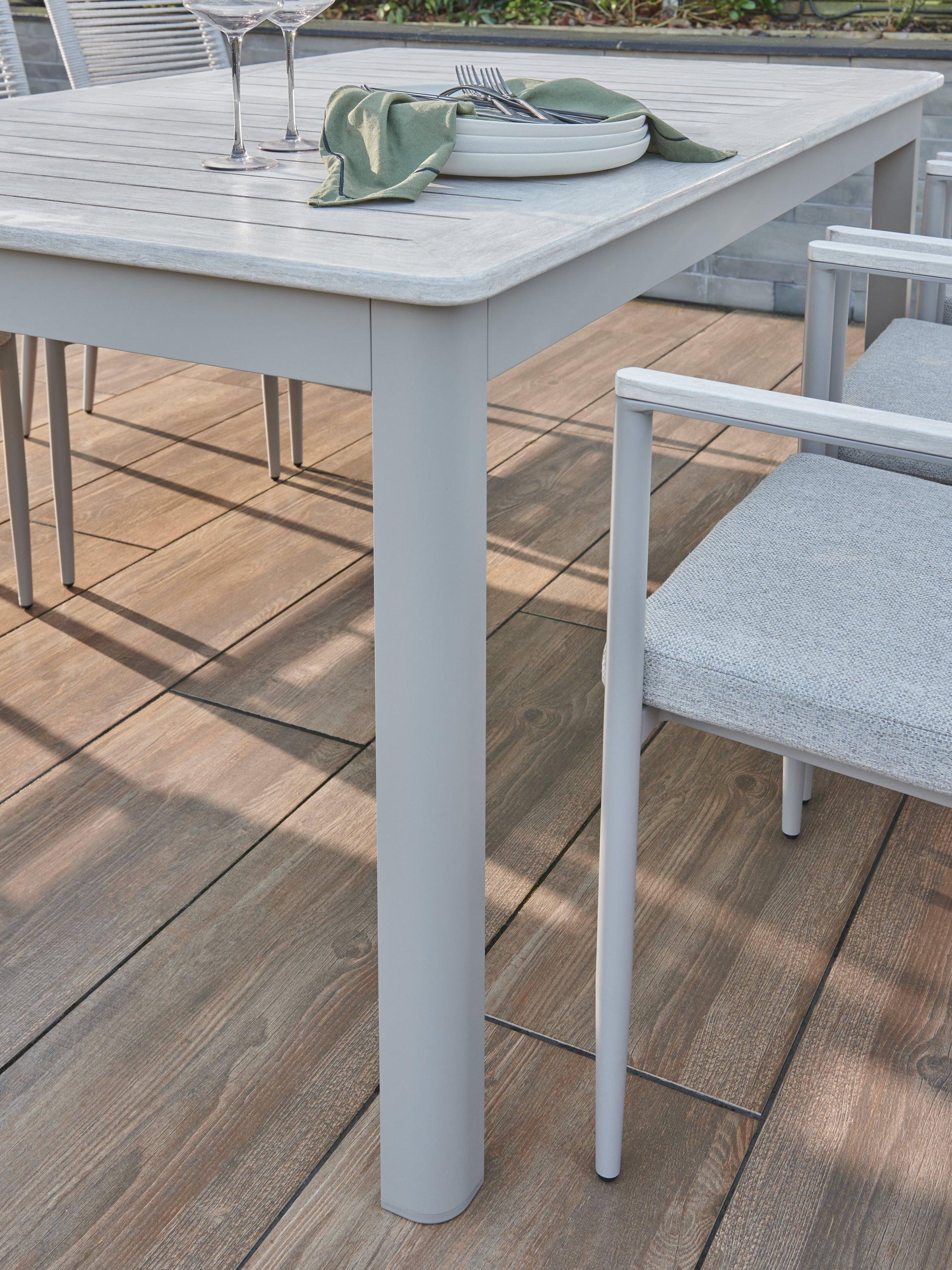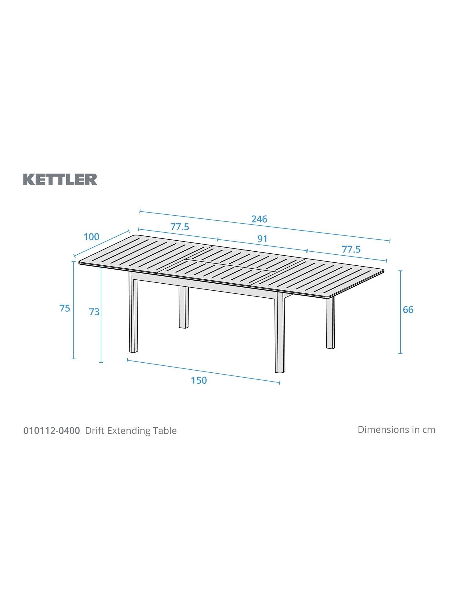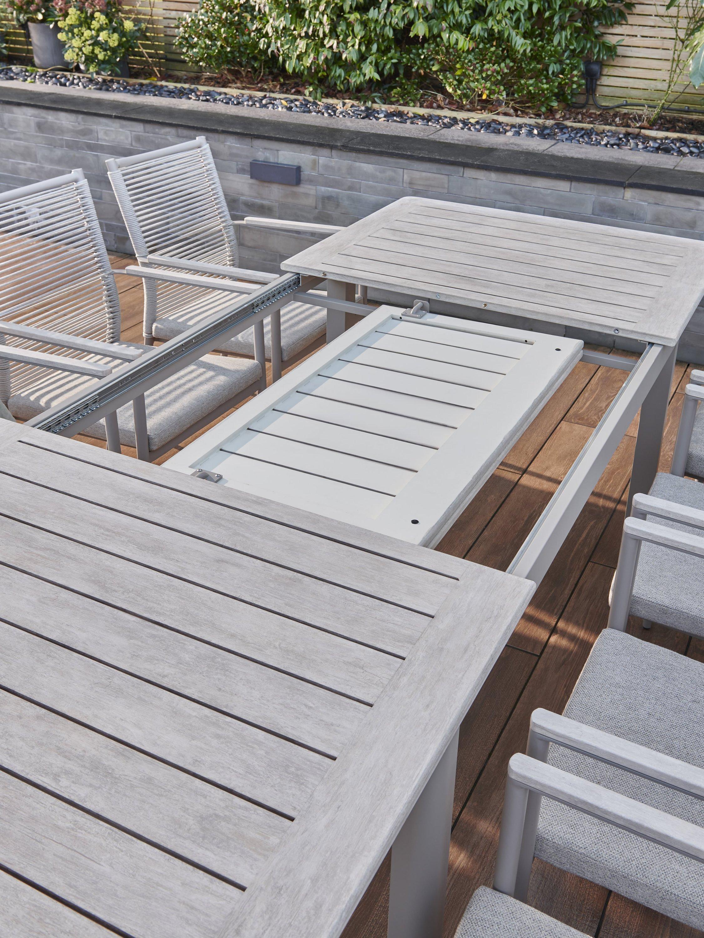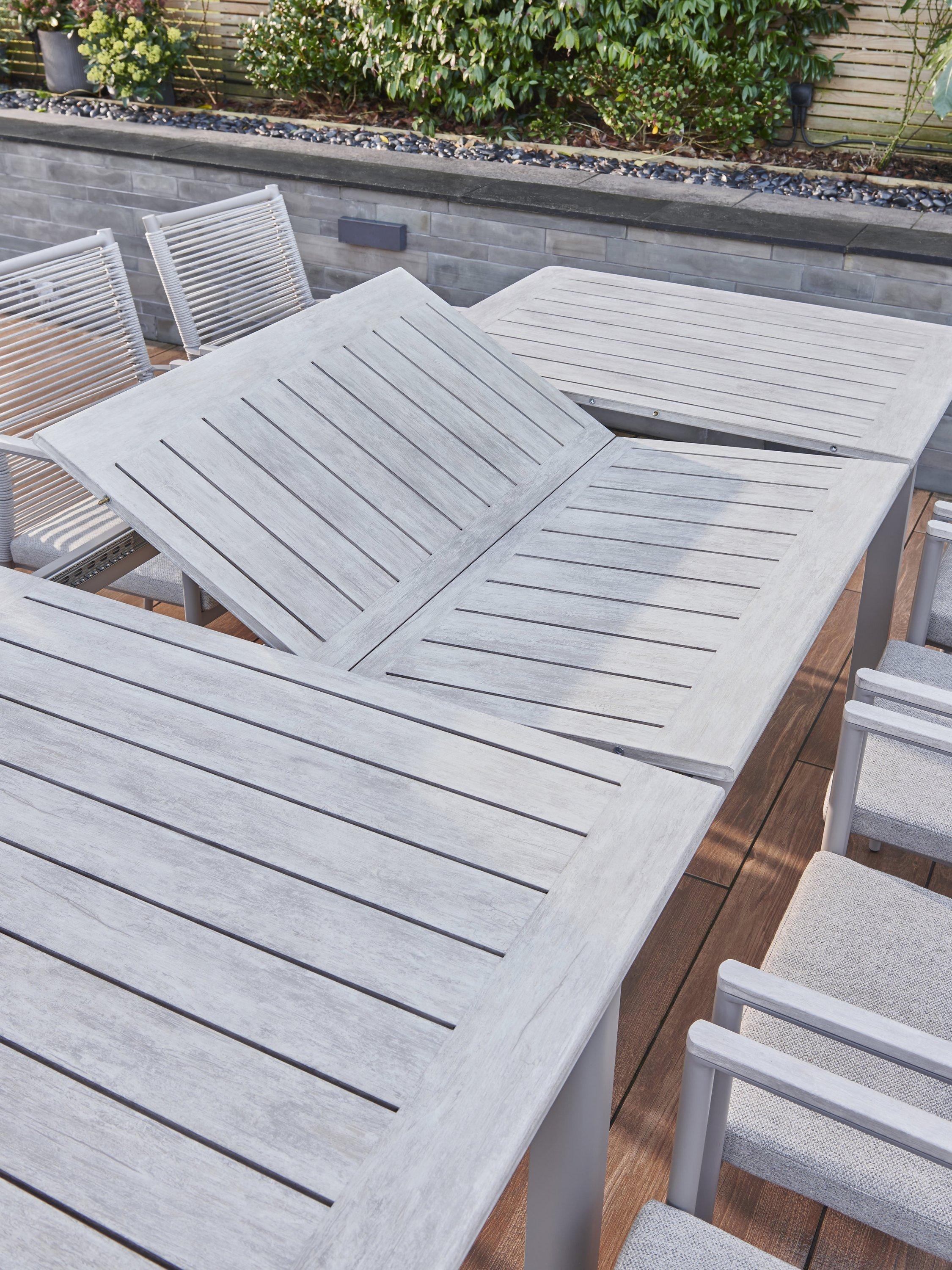The Drift extending garden dining table has it all: not only good looks, but it's practical and versatile too. The table has a slatted wood-effect table top, and there's room for up to 10 people. Combine with Trento or Marina garden dining chairs from KETTLER.