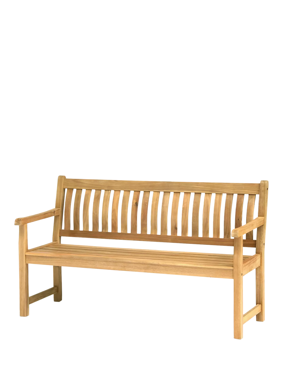 The Hampton 5-foot garden bench is ideal for a balcony or garden or as additional seating outdoors. The classic slatted design has straight armrests and seat as well as a shaped back in a natural finish. Made from high-quality, FSC-certified eucalyptus wood that's naturally weather-resistant, the bench seats up to three people.