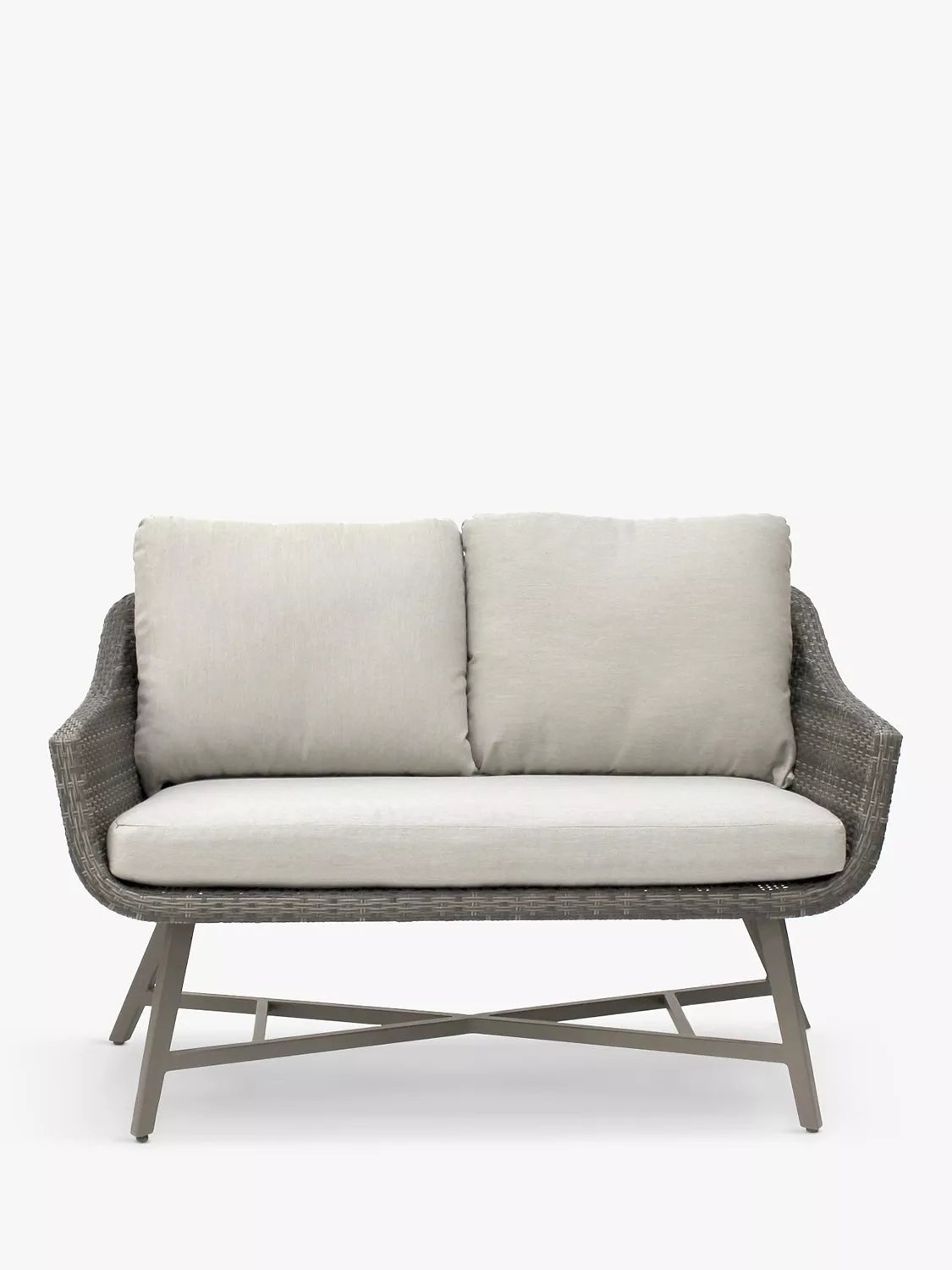 Hand woven from 6mm flat wicker that's both UV-resistant and waterproof, you can leave the sofa outdoors during the summer months without having to worry about any potential damage caused by the elements. The aluminium frame provides both durability and strong support, while foam-filled, stain and shower-resistant cushions ensure added comfort. Prolong the lifespan of the cushions and bring them indoors when not in use.