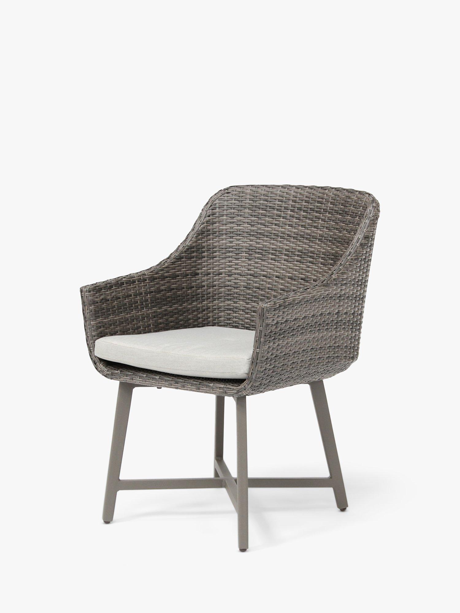 Hand woven from 6mm flat wicker that's both UV-resistant and waterproof, you can leave the set outdoors during the summer months without having to worry about any potential damage caused by the elements. Aluminium frames provide both durability and strong support, while foam-filled, stain and shower-resistant cushions ensure added comfort. The rectangular table has a hand-painted weathered wood effect top to give a beautiful finish.