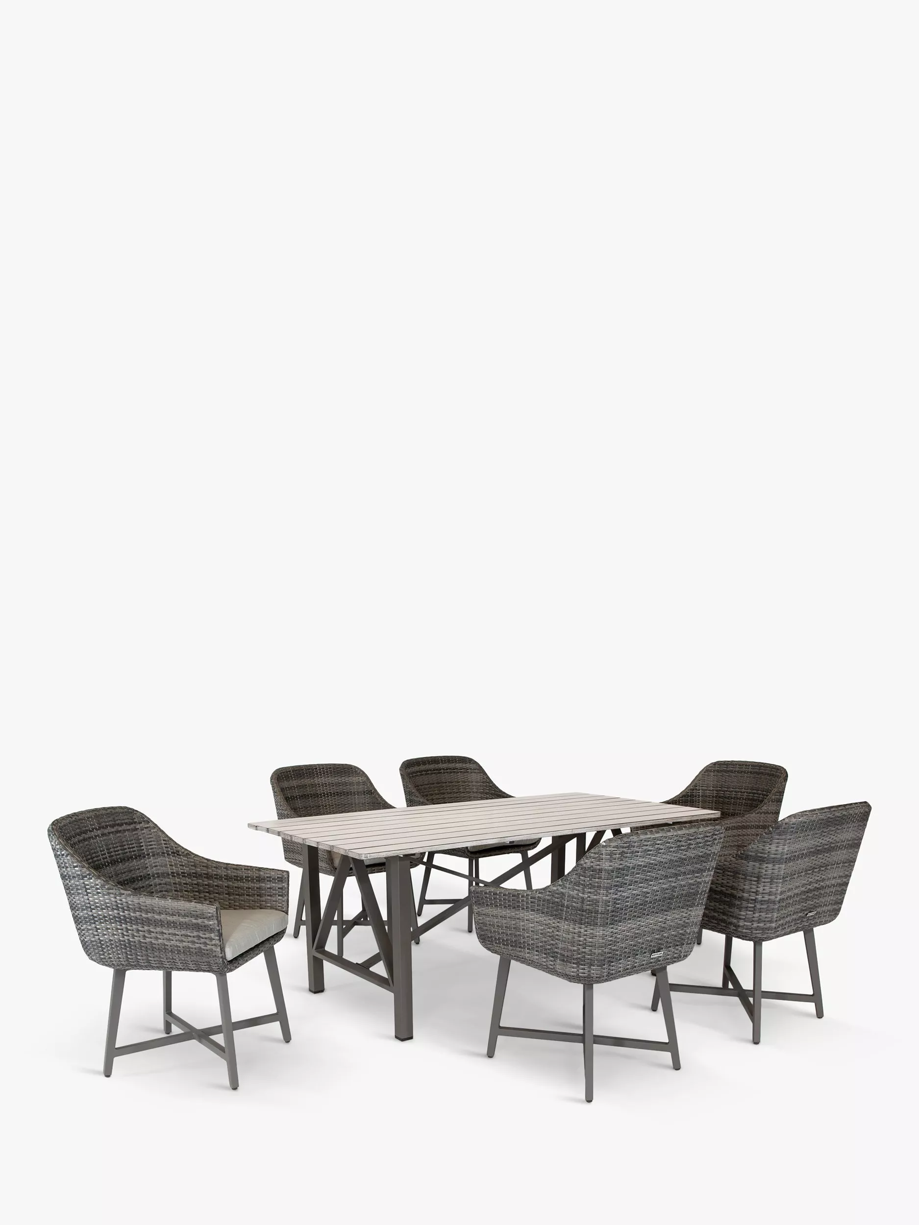 With its distinctive retro style and wicker finish, this six-seater LaMode garden dining table and chairs set from KETTLER provides a stylish way to dine outside or in the conservatory.