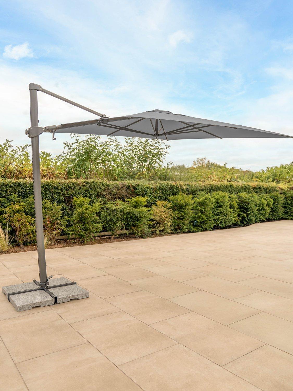 Everything you could want from premium outdoor shade, KETTLER's Luna Cantilever Parasol is easy to operate and fully adjustable both vertically and horizontally. It provides an impressive 72 position settings and rotates a full 360 degrees via its sturdy metal footplate.