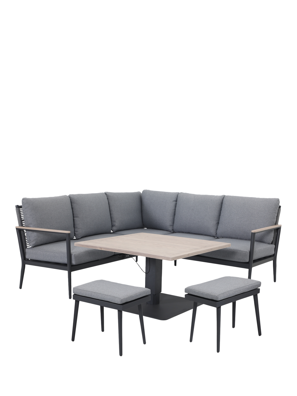 Designed for effortless outdoor living, the Merano Corner Set features low-maintenance, powder-coated aluminium frames, weatherproof cushions, and a convenient height-adjustable table that easily transitions from lounging to dining. Its versatile design makes it an ideal solution for a wide range of outdoor spaces, from patios to garden terraces.