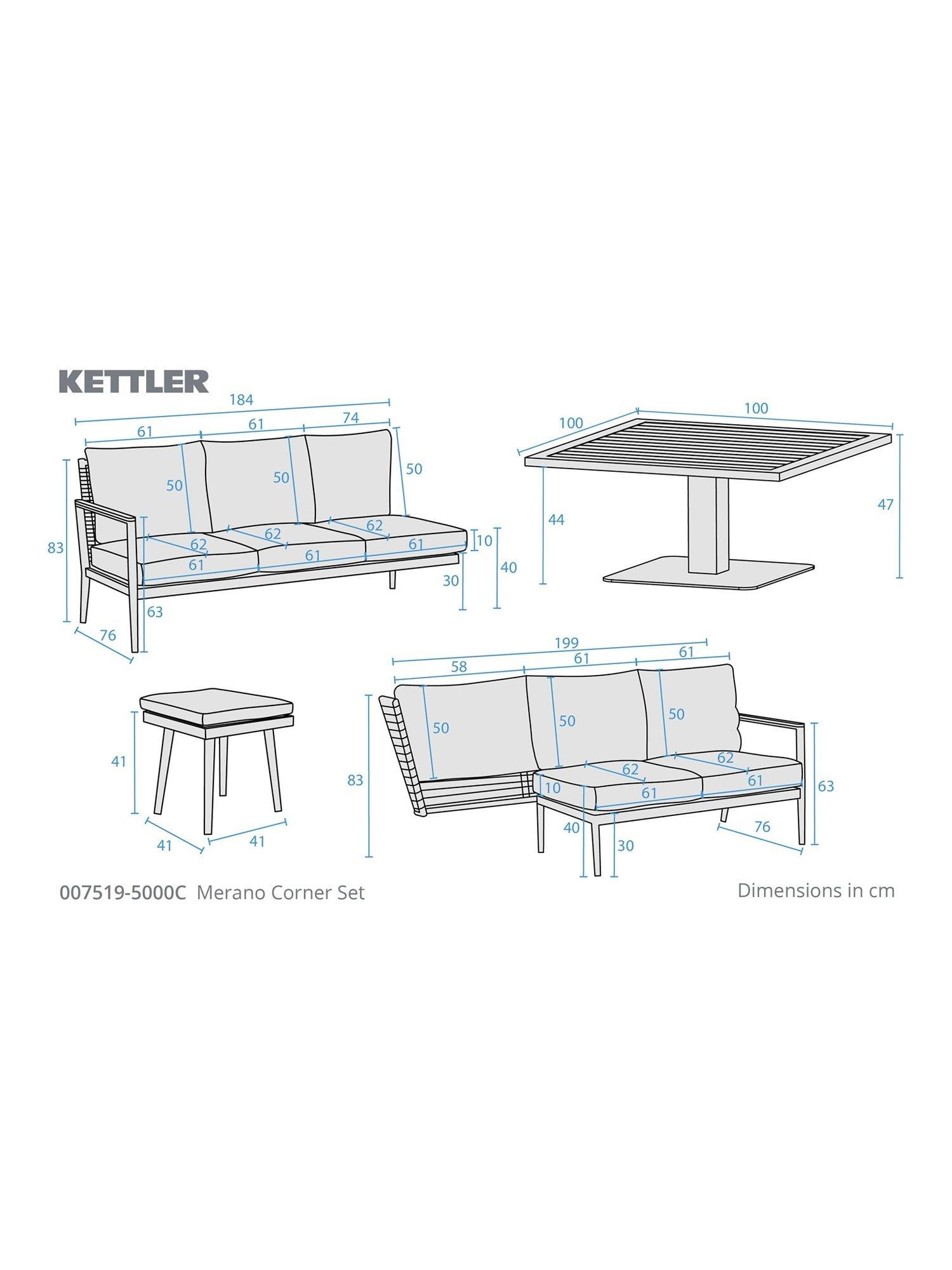 - KETTLER RainSafe® cushions with water-repellent coating for faster drying