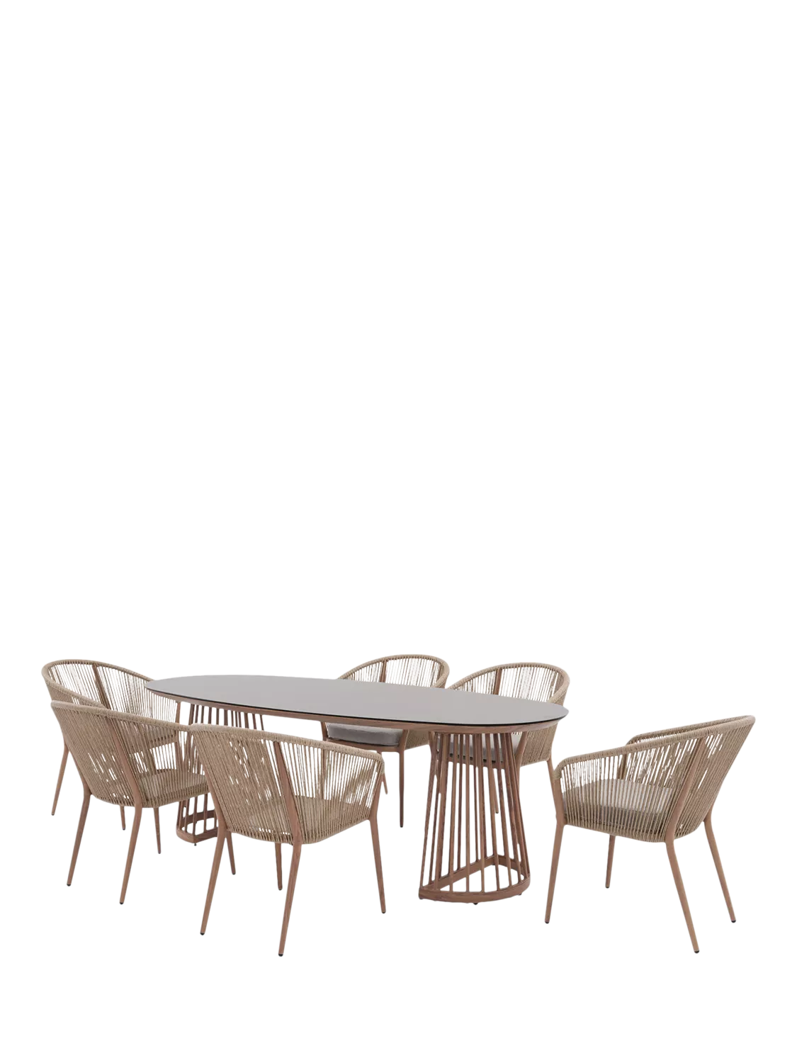 - Oval garden dining table with a durable ceramic glass top