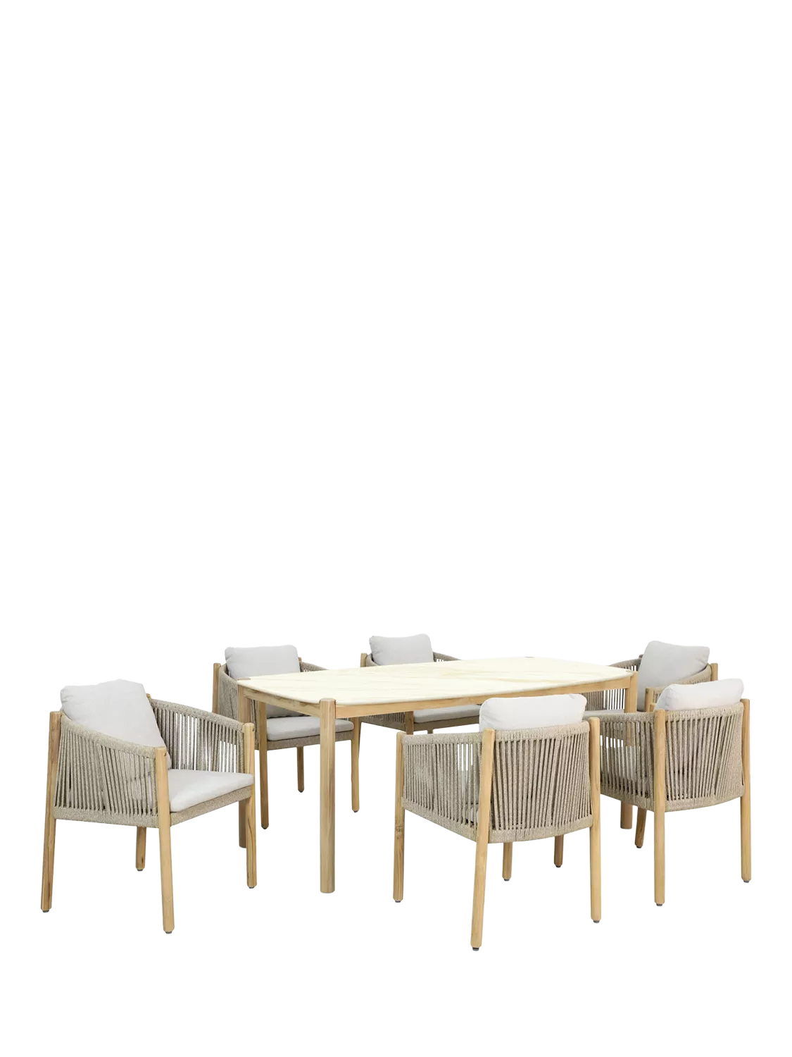 KETTLER Naples garden furniture boasts all of the practical things you may be looking for in a garden set but with the added natural beauty of wood. Frames are made with strong aluminium combined with an FSC-certified teak wood exterior. Seating is designed with ergonomics in mind with rope detailing so you can relax in comfort, complemented by weatherproof seat and backrest cushions.