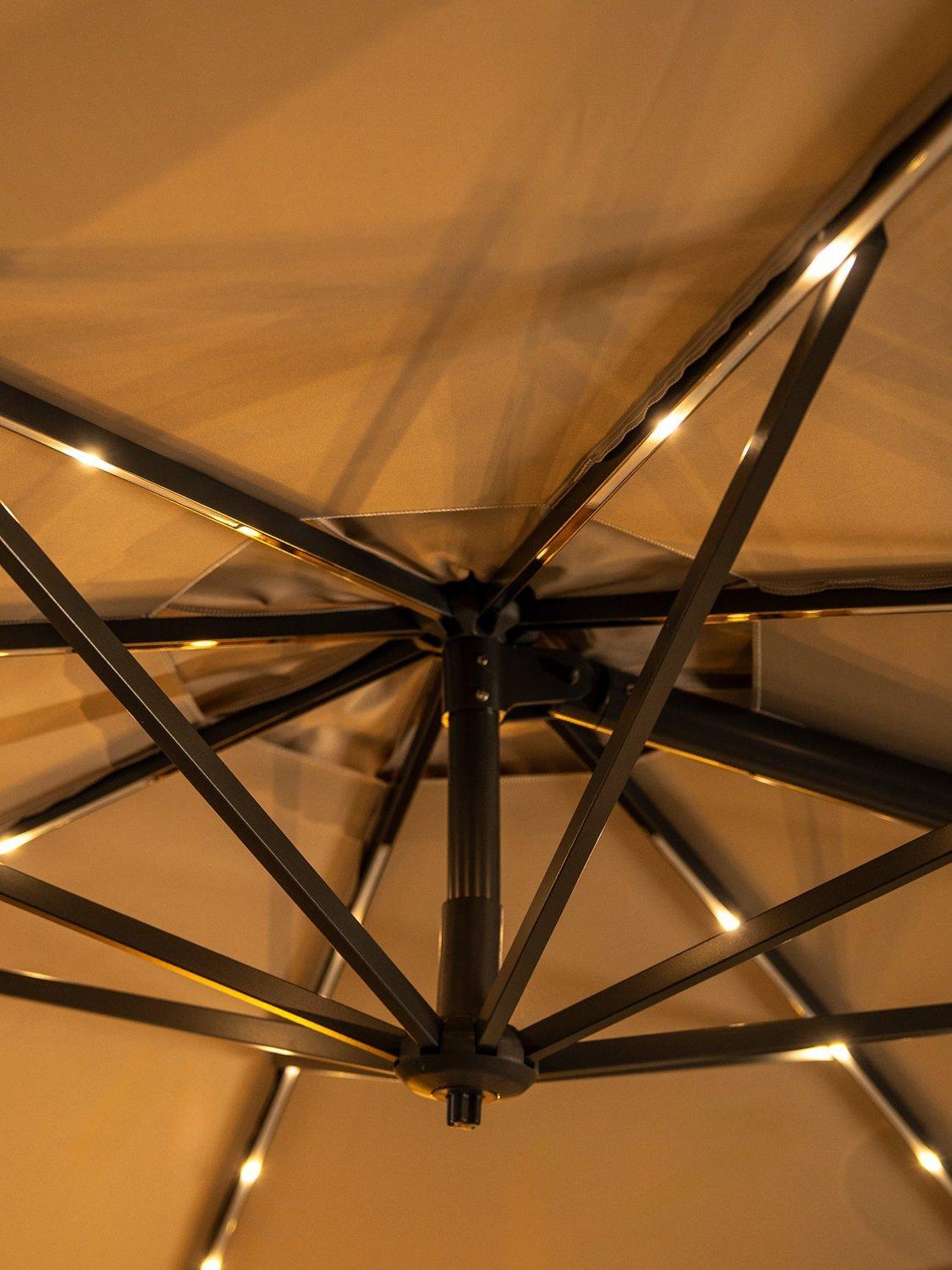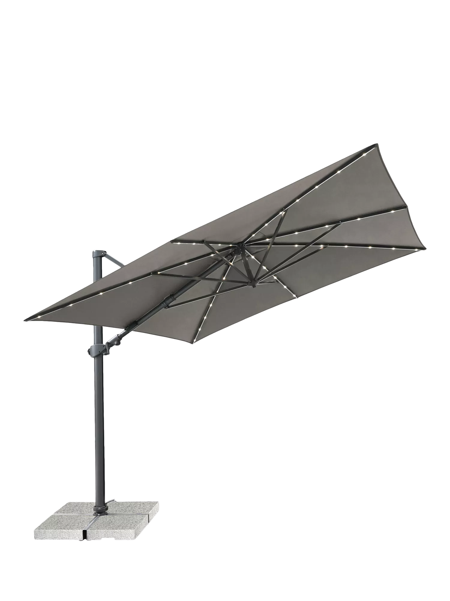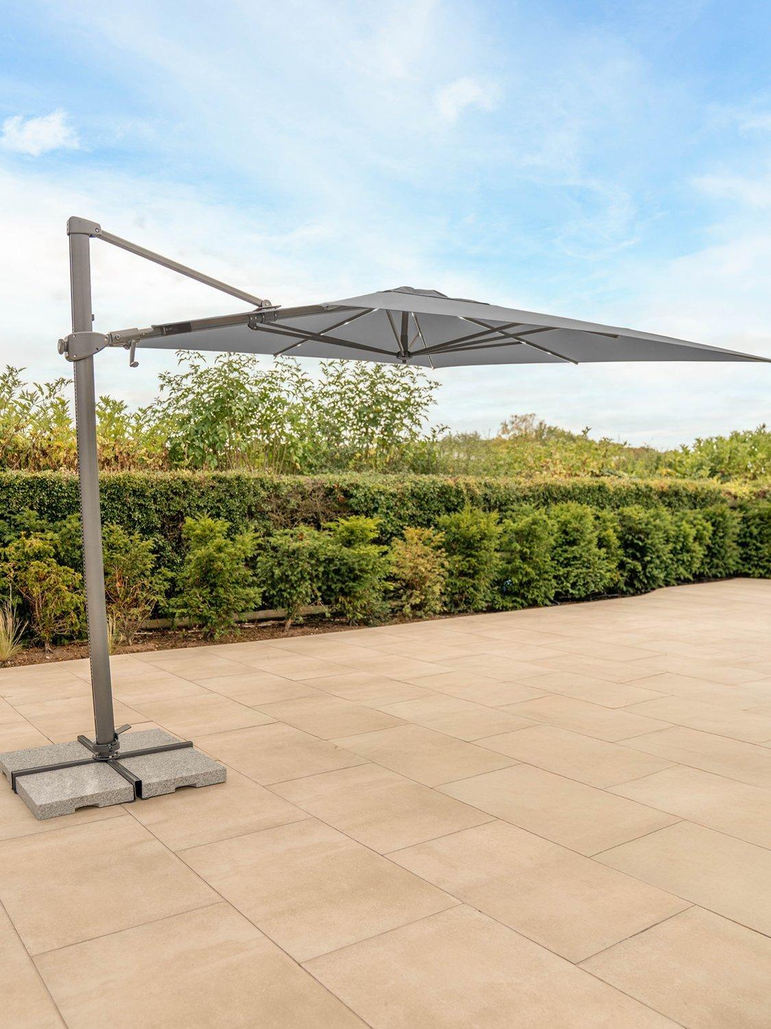 Everything you could want from premium outdoor shade, KETTLER's Orion Cantilever Parasol is easy to operate and fully adjustable both vertically and horizontally. It provides an impressive 72 position settings and rotates a full 360 degrees via its sturdy metal footplate.