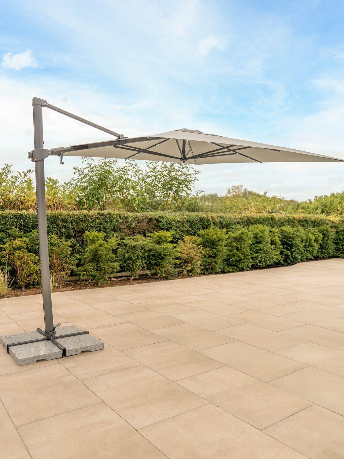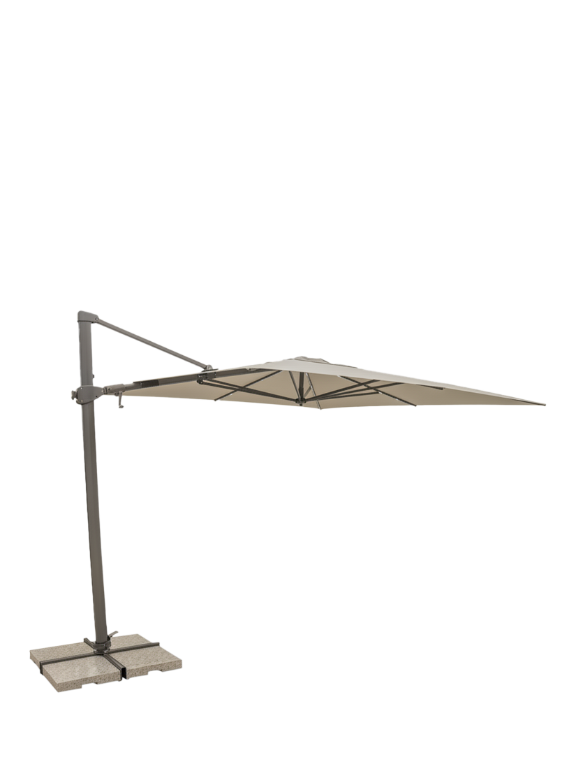 Everything you could want from premium outdoor shade, KETTLER's Orion Cantilever Parasol is easy to operate and fully adjustable both vertically and horizontally. It provides an impressive 72 position settings and rotates a full 360 degrees via its sturdy metal footplate.