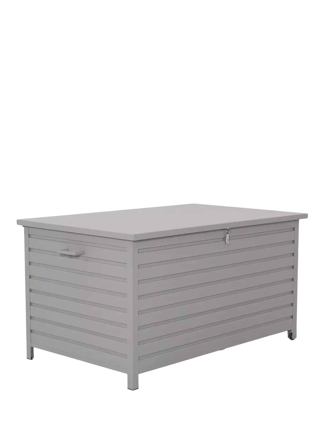 Medium-sized aluminium garden storage box from KETTLER, a universal design making it suitable as a standalone item or to match KETTLER garden furniture. It has a waterproof liner and accommodates cushions from any of the standard KETTLER Palma sets.