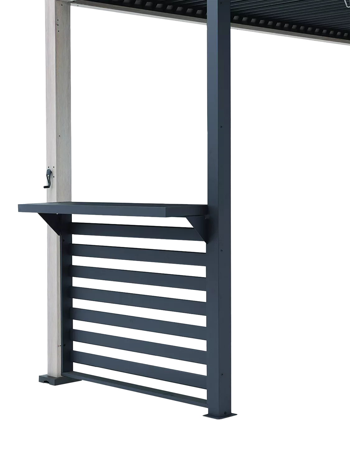 A great addition to the KETTLER Signature Pergola, sold separately. Provides a bar for entertaining and a slatted panel, made from aluminium. Add some bar chairs to complete the look.
