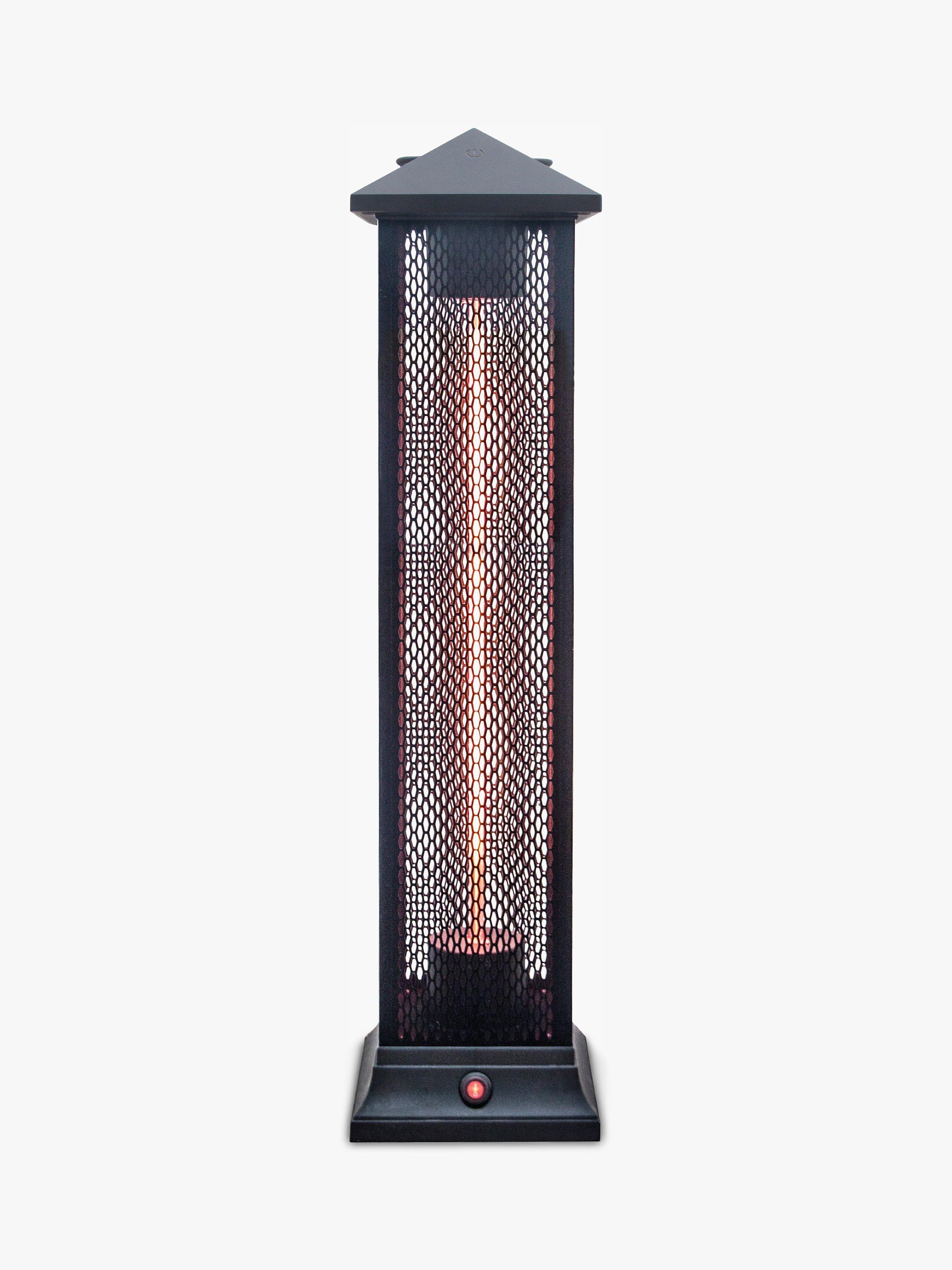 The pyramid-shaped roof adds a traditional look to the modern mesh design that surrounds the internal bulb. Its infrared technology heats bodies rather than wasting energy on the air around you, making it efficient. This electric-powered patio heater creates no noises or fumes. Carry the lantern by the top handle and place it wherever you need it to be and simply turn it on with the red button on its base.
