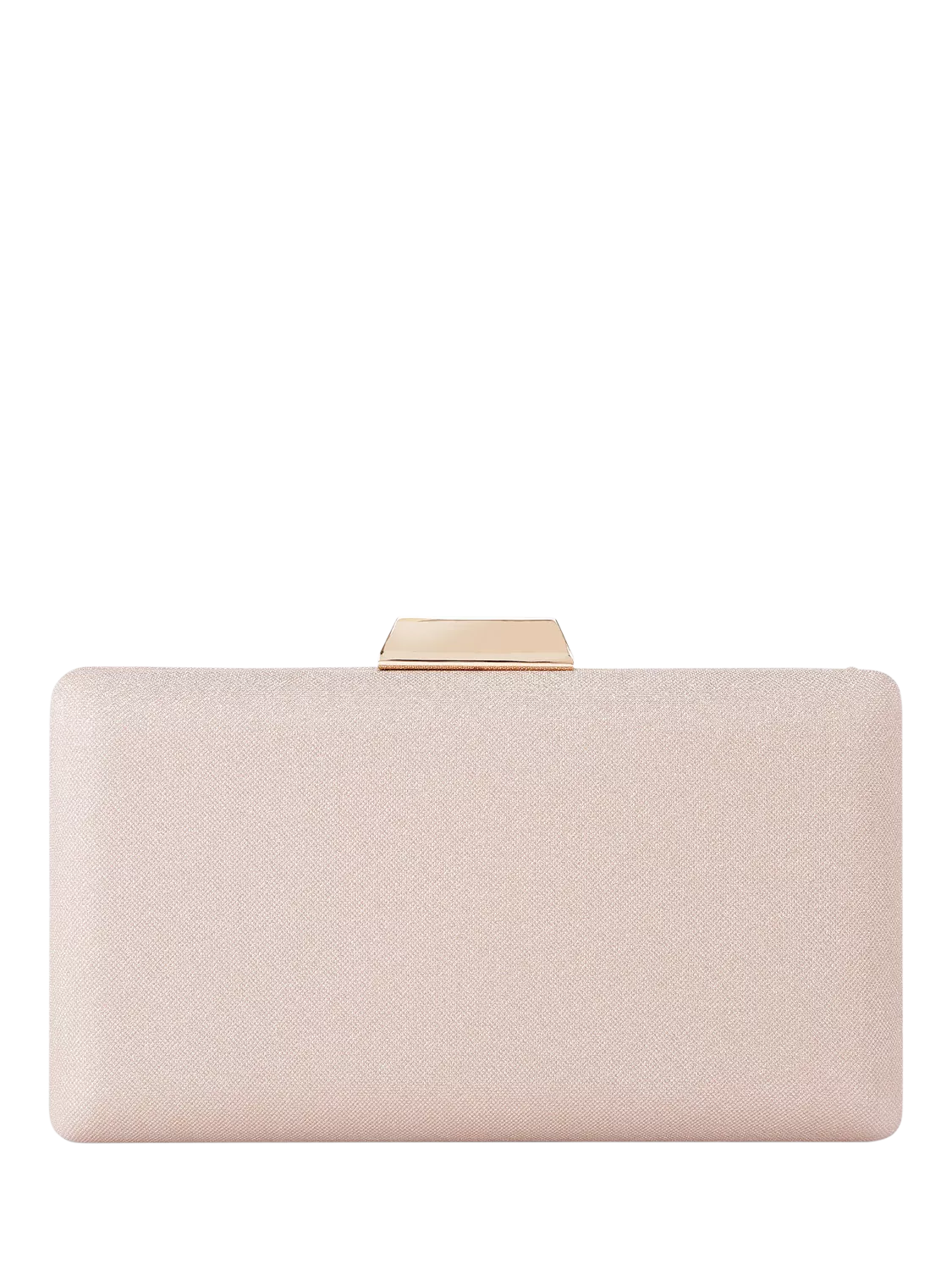 The KG Kurt Geiger Billy clutch bag features a gold fabric exterior with glitter shimmer. Featuring an optional gold chain strap and room for phones up to 7 inches, it's completed with small pin stud branding on the back of the bag.
