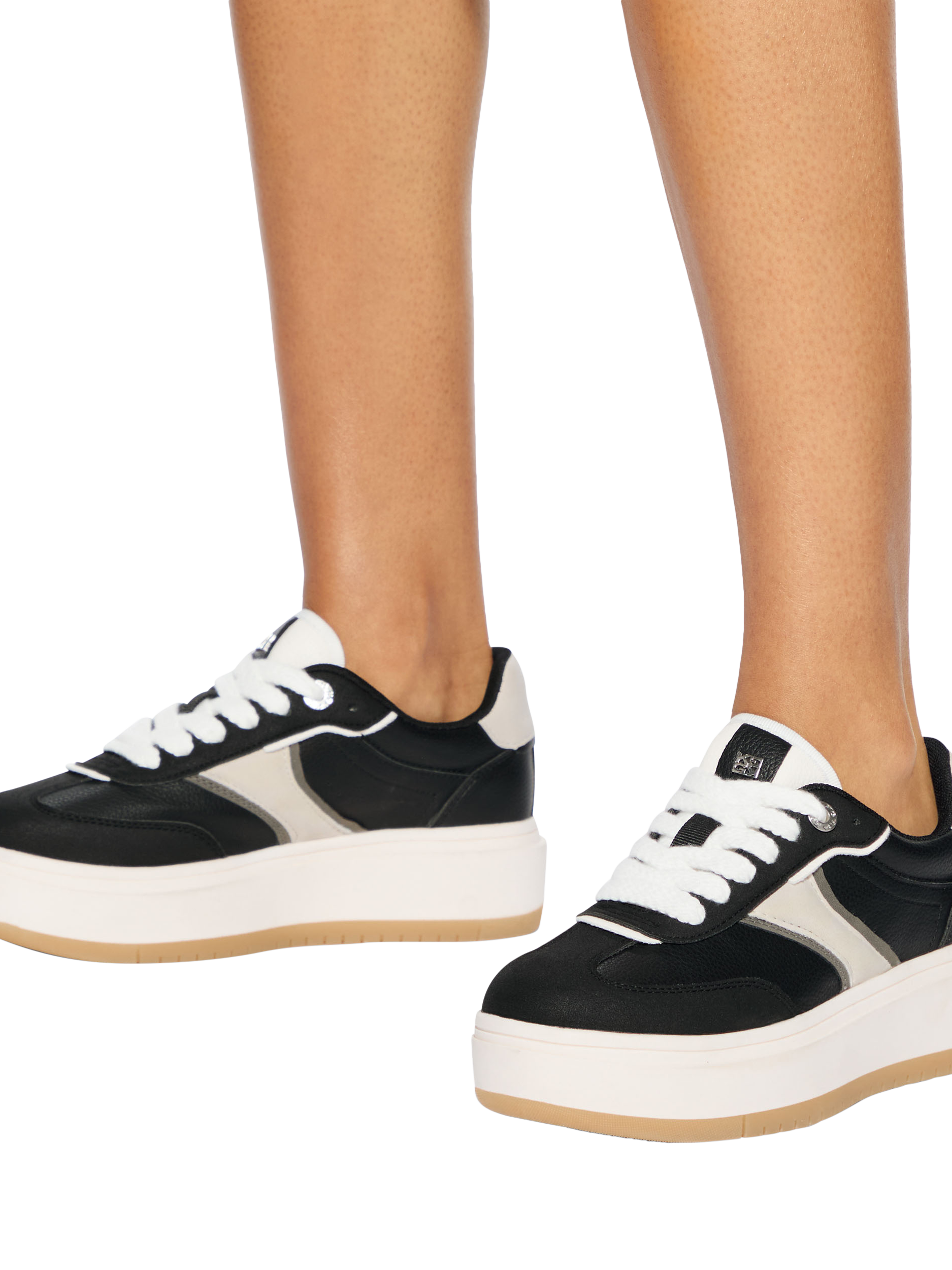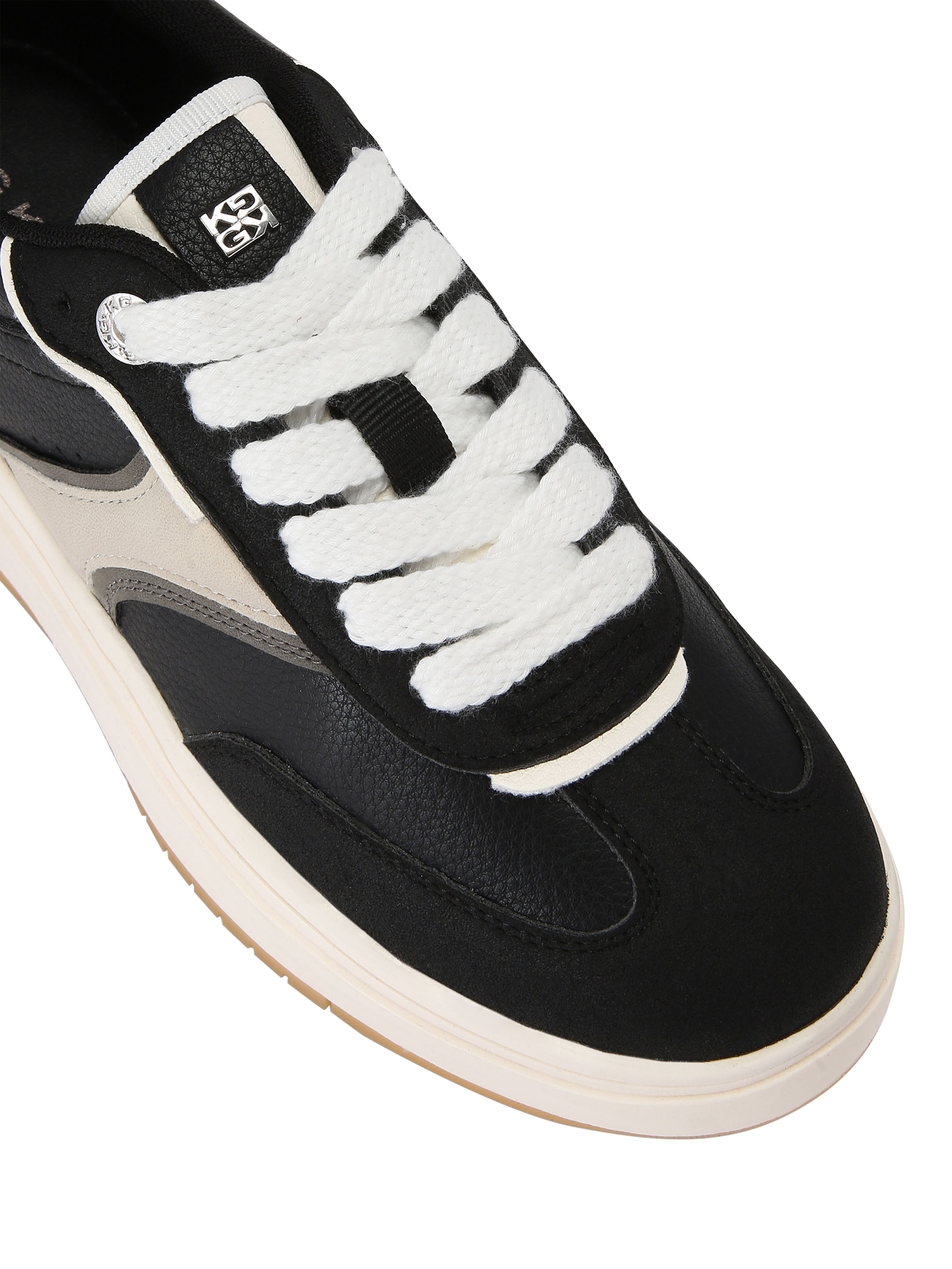 This Kick trainer from KG Kurt Geiger features a black upper that laces up at the front. There are gold eyelets and branded hardware across the upper and the chunky sole has a gum outsole.