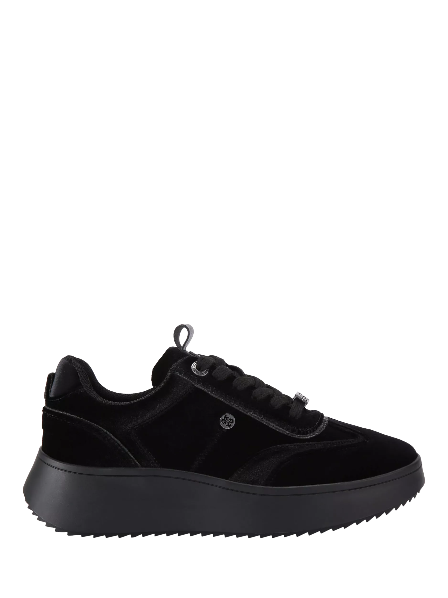 A pair of chunky velvet trainers from KG Kurt Geiger. The zig zag sole ensures comfort for all-day wear, while clever design details add a pop of personality.