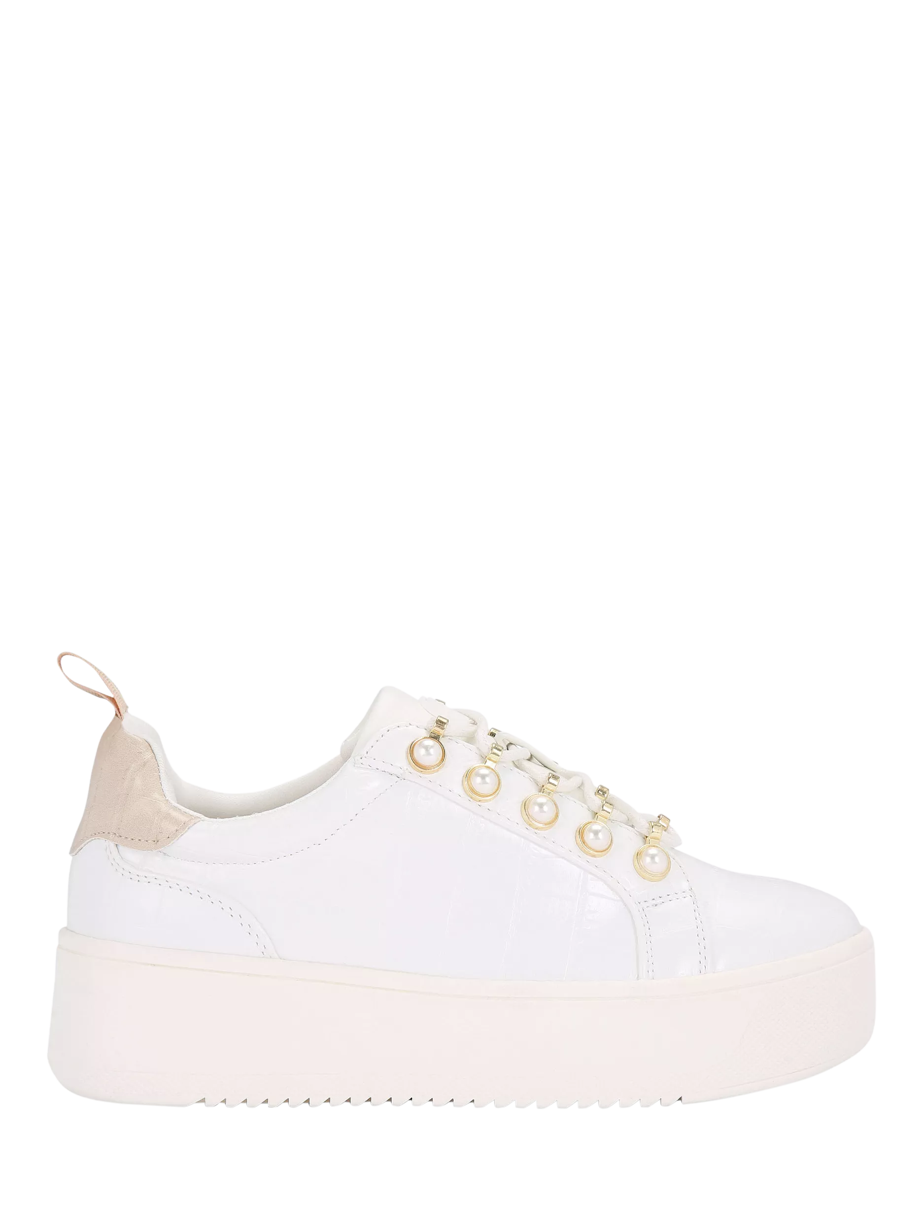 A contemporary design that pairs with almost anything, this pair of chunky trainers by KG Kurt Geiger is made with faux leather uppers that are built to last. Sitting on a flatform heel with a rounded closed toe, they feature pearl and metallic accents.