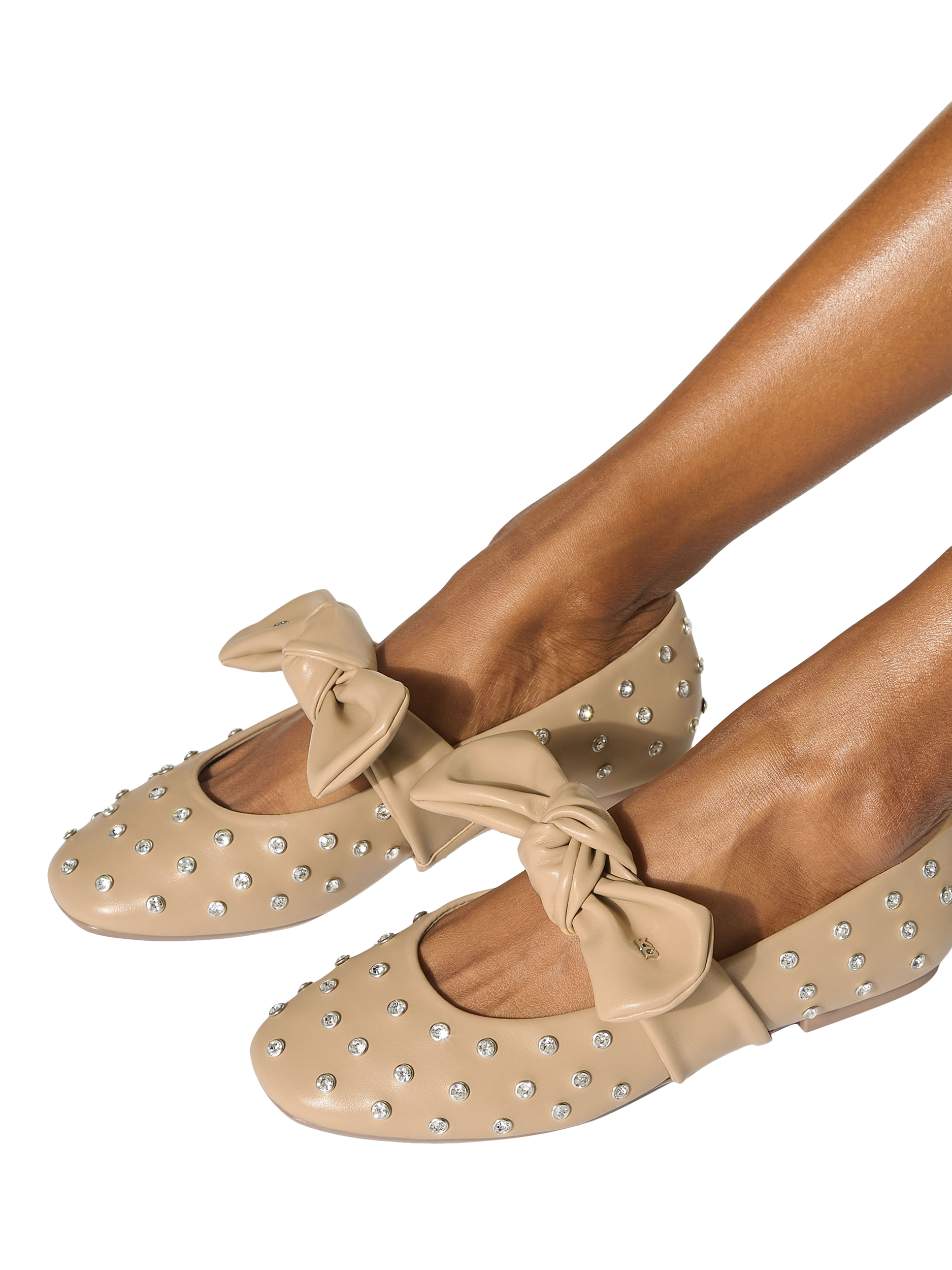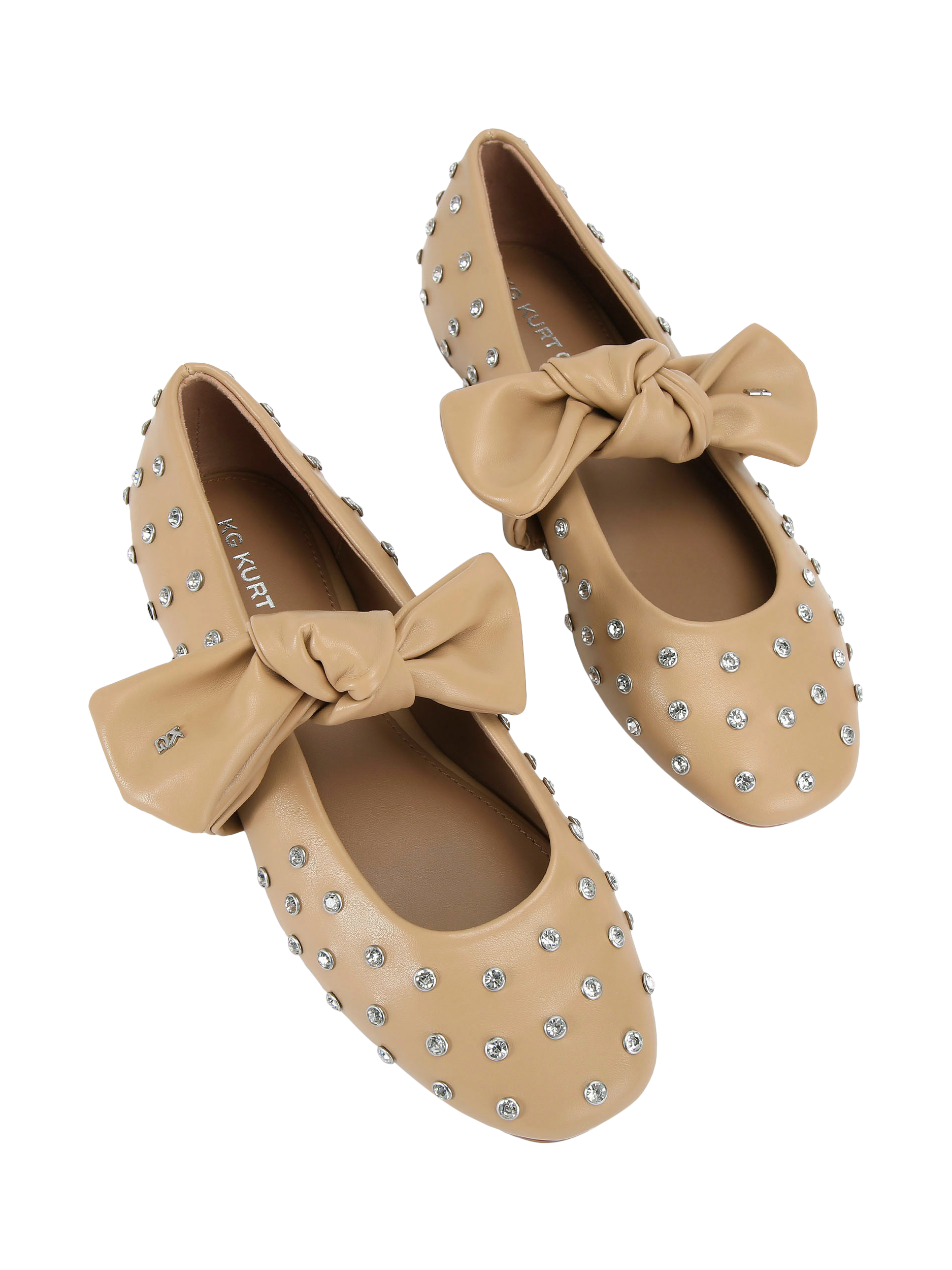 KG Kurt Geiger ballet pumps featuring rhinestone stud embellishments and a clever bow. The easy slip-on design and square toe keeps you comfortable, while the flat sole means you can move freely all day.