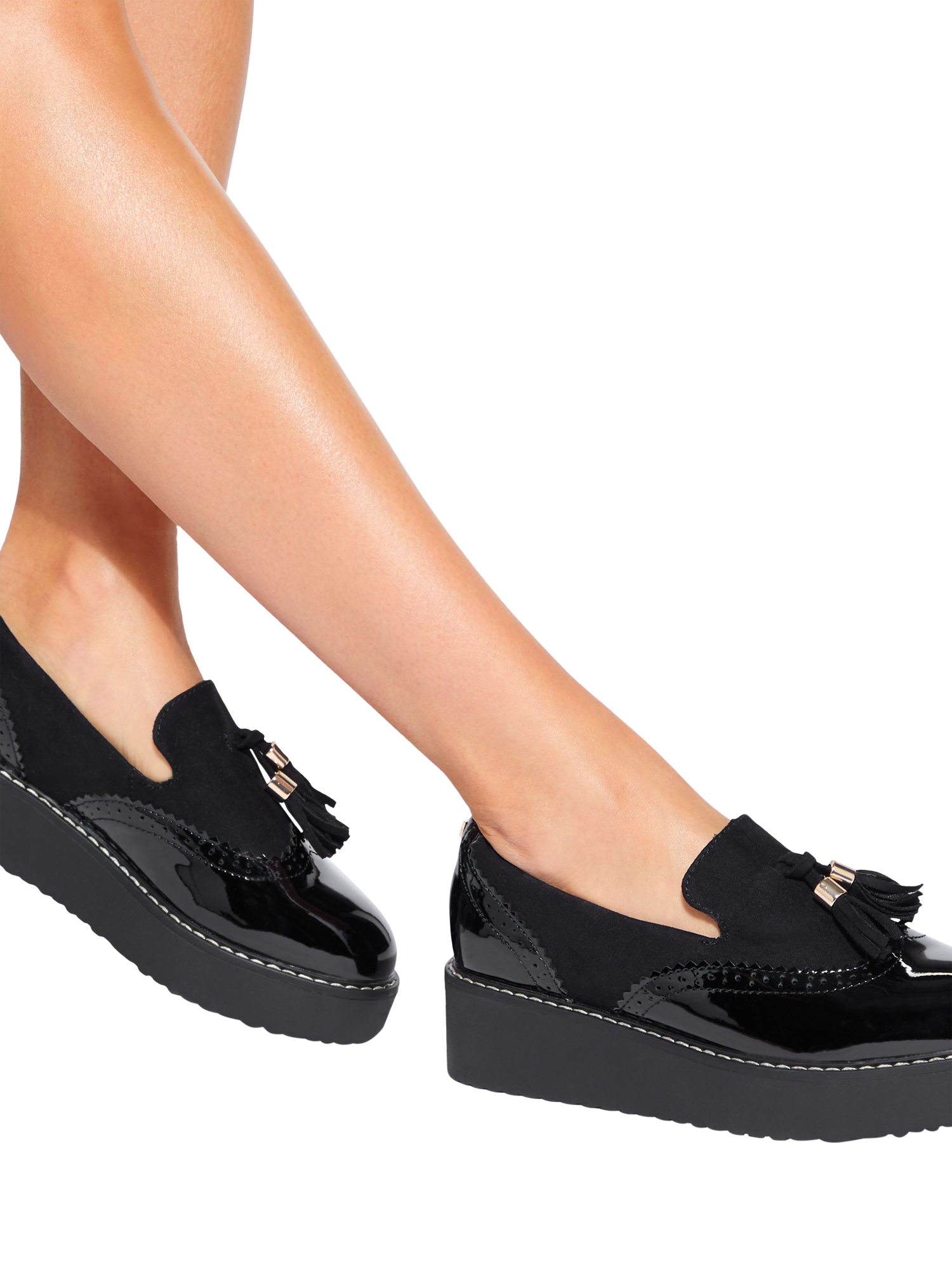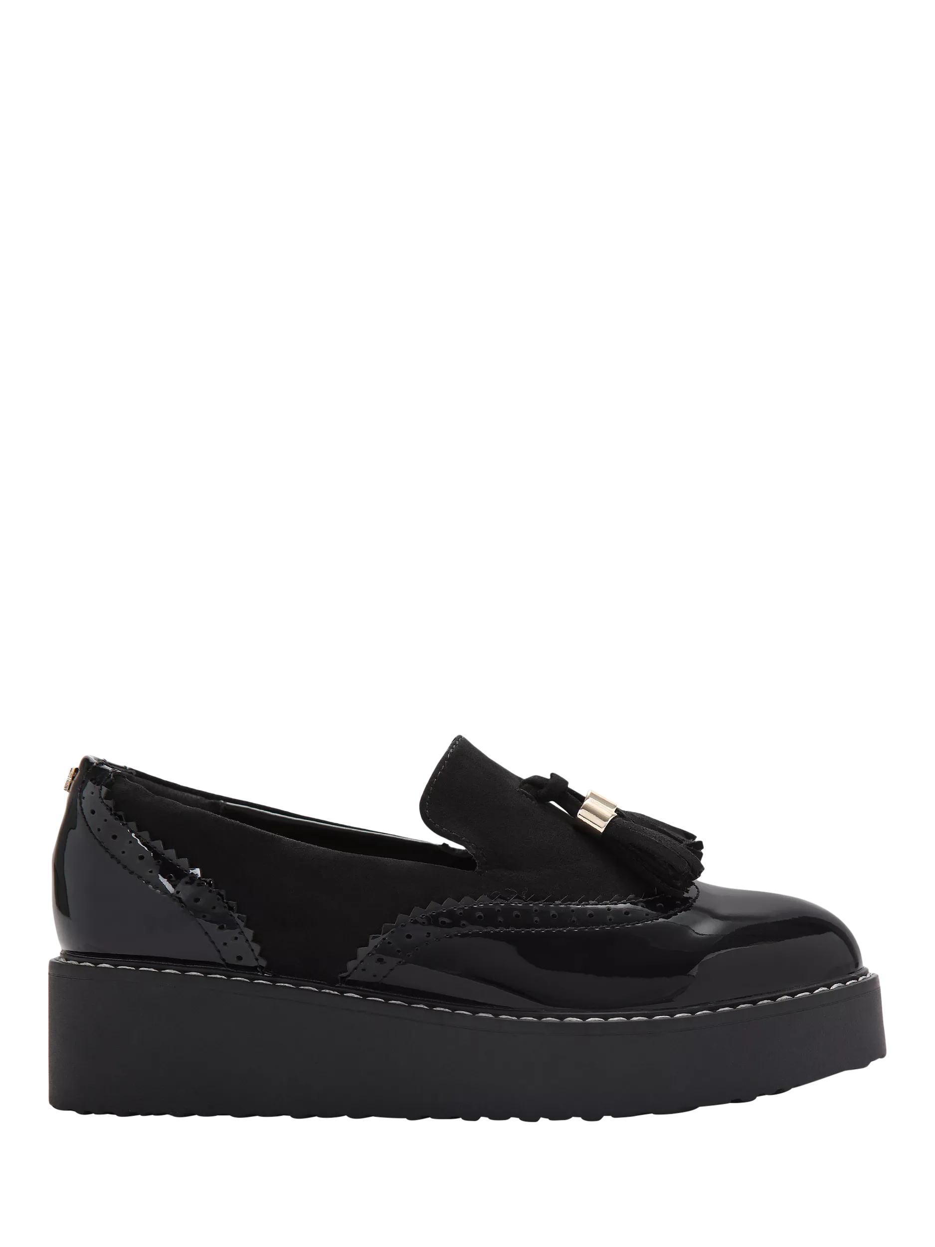Sitting on a wedge flatform heel, they come in a round closed toe design with a tassel detail.