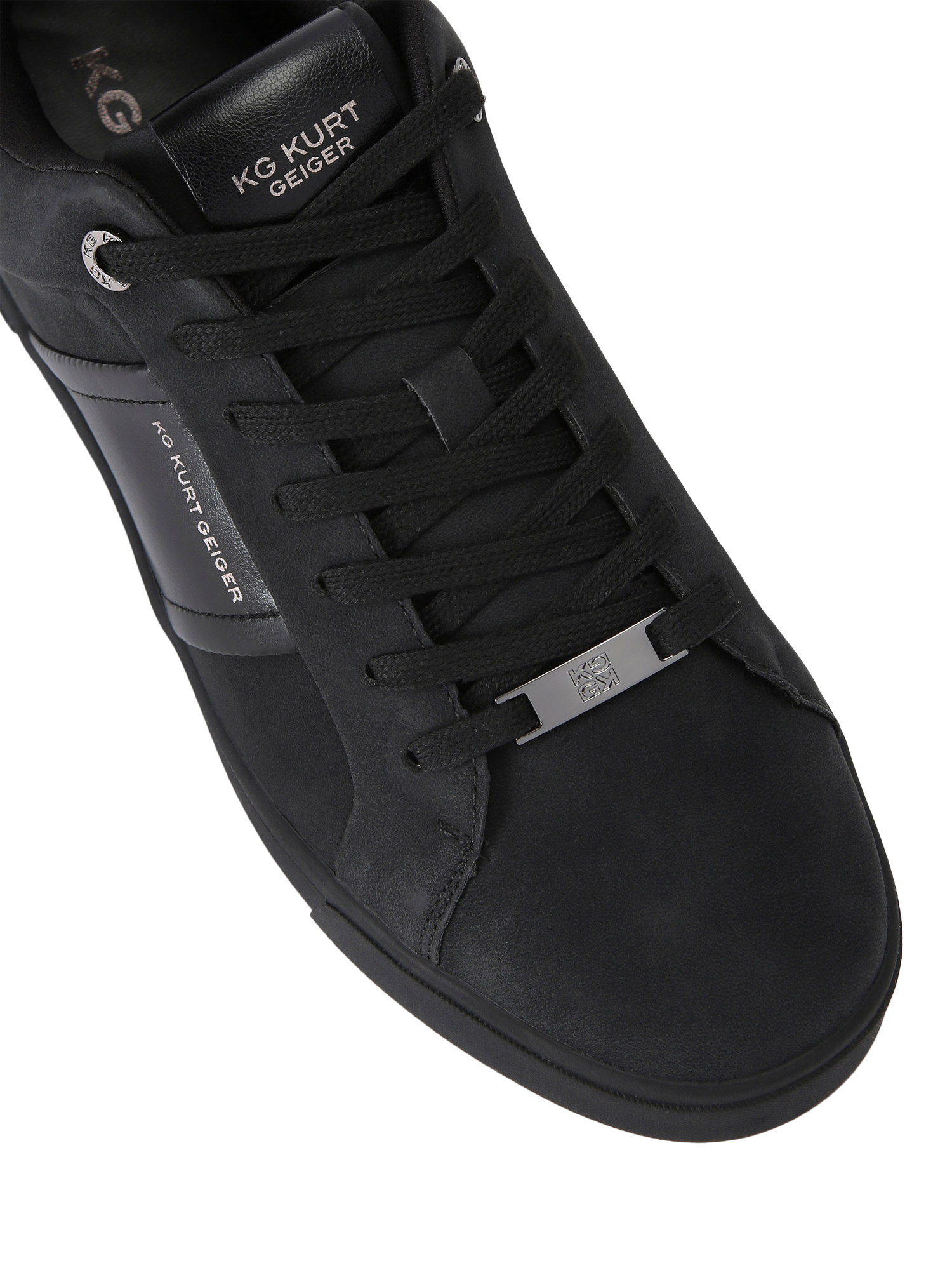 From KG Kurt Geiger, these Noah trainers feature a grained textured upper. The front laces up with white hardware across the shoe and there is silver foil embossed branding on the tongue and sides.