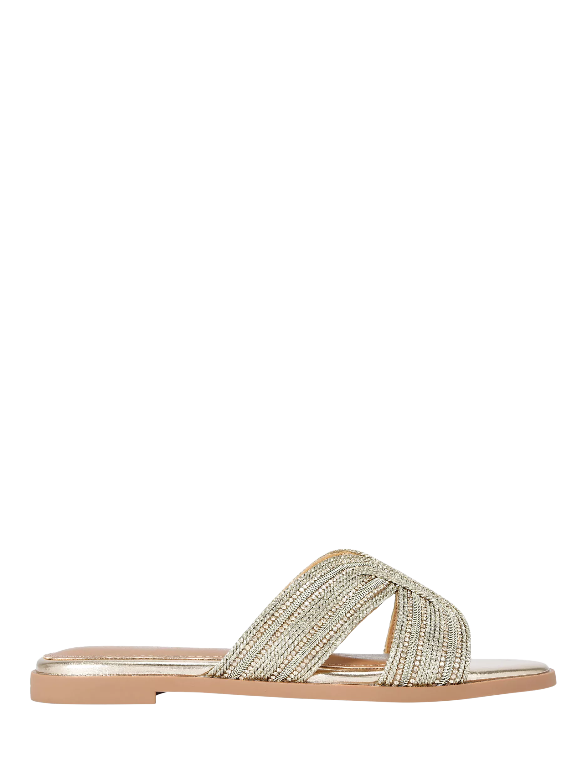 A favourite in warmer months, this pair of flat sandals from KG Kurt Geiger is made with metallic uppers that are built to last. Set on a flat heel, they are finished with an open rounded toe.